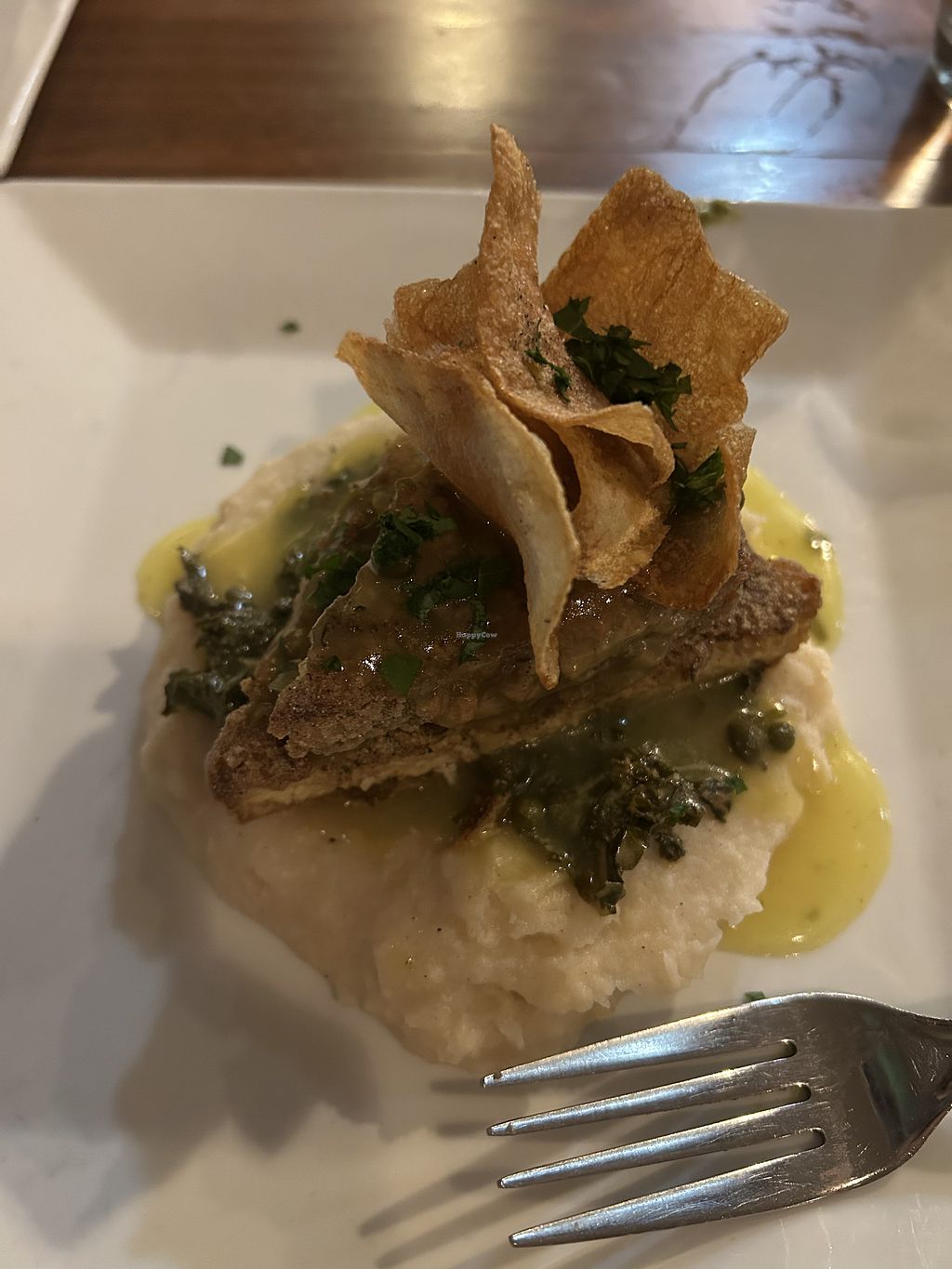 Pretentious food, but only one thing I could eat because of wheat and cashew allergies. They should work on making more basic food, or at least have a menu of sides. I don't see how this was any better than eating at a non vegan restaurant. The one thing that I could eat was just bland.