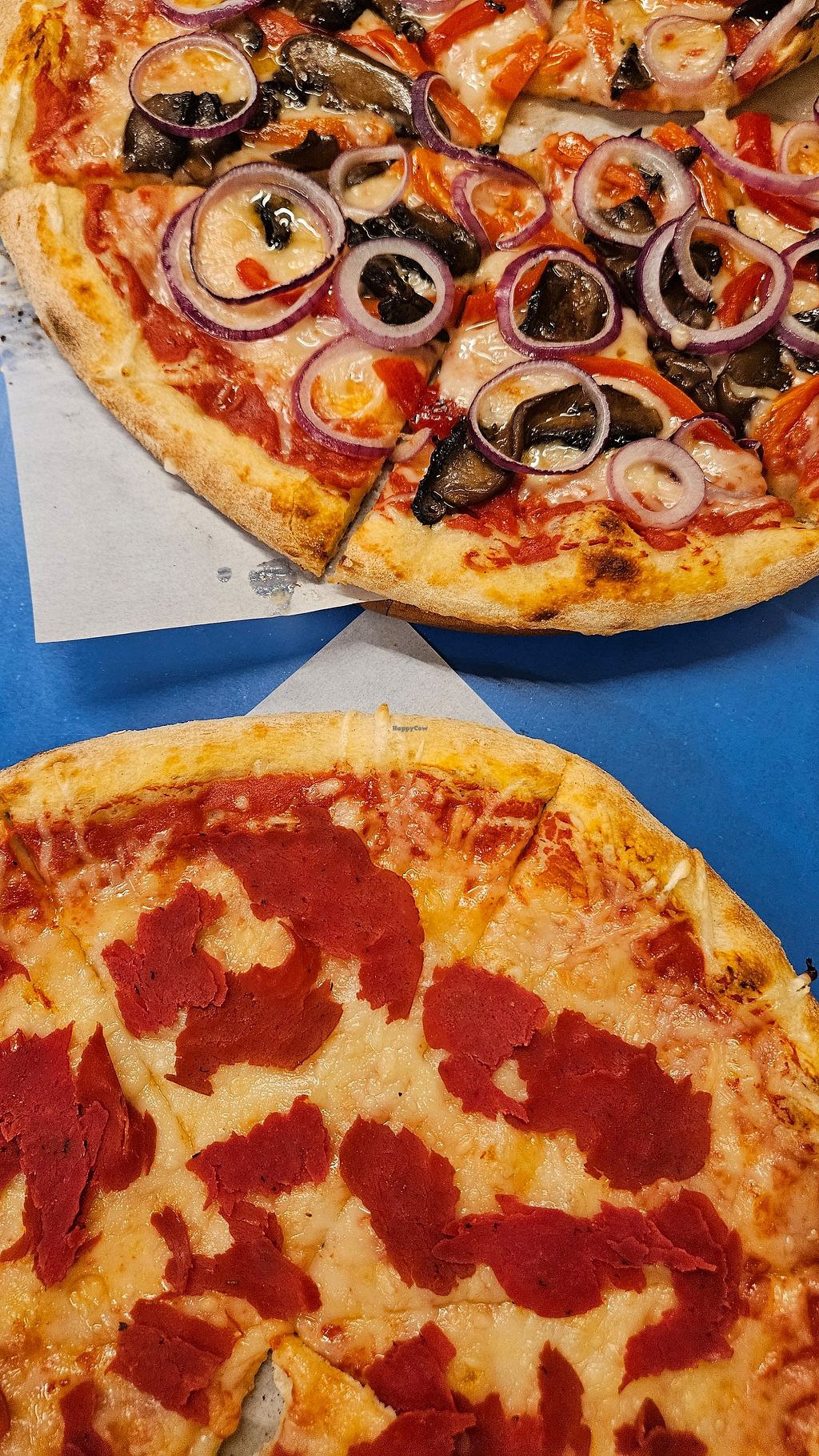 Tasty full vegan pizzas with lot of veg cheese, mmmm.