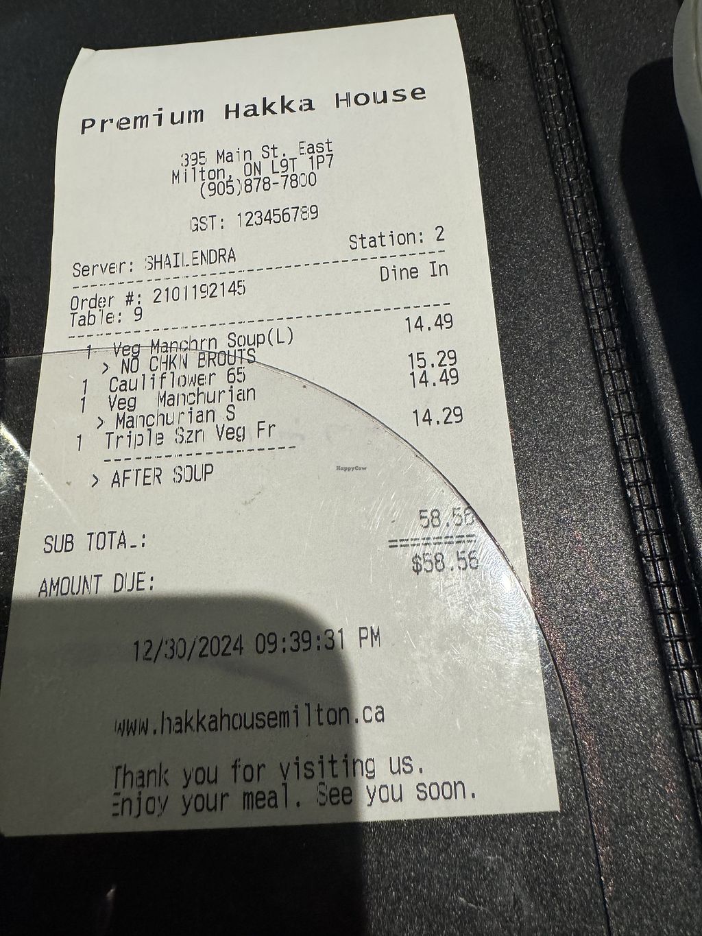 Read moreHot n Sour Soup - good soup. Perhaps a little less salt or soy sauce then we were used to, but adding a little did the trick.