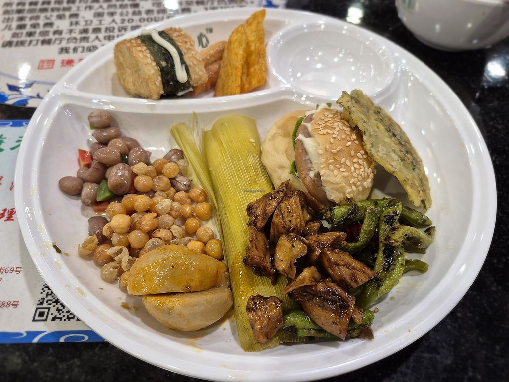 I probably should only have visited this place once in my entire life but I just kept coming back. I wanted to try EVERYTHING (vegan) and I may have done just that. Honestly after lunch here you won't need dinner. They even serve fruit portions... And all for just 20 yuan. Unbelievable. Watch out for the bitter melon, besides that everything (vegan) is great. Cakes and battered things may contain egg so I didn't have those, still couldn't walk afterwards though.
