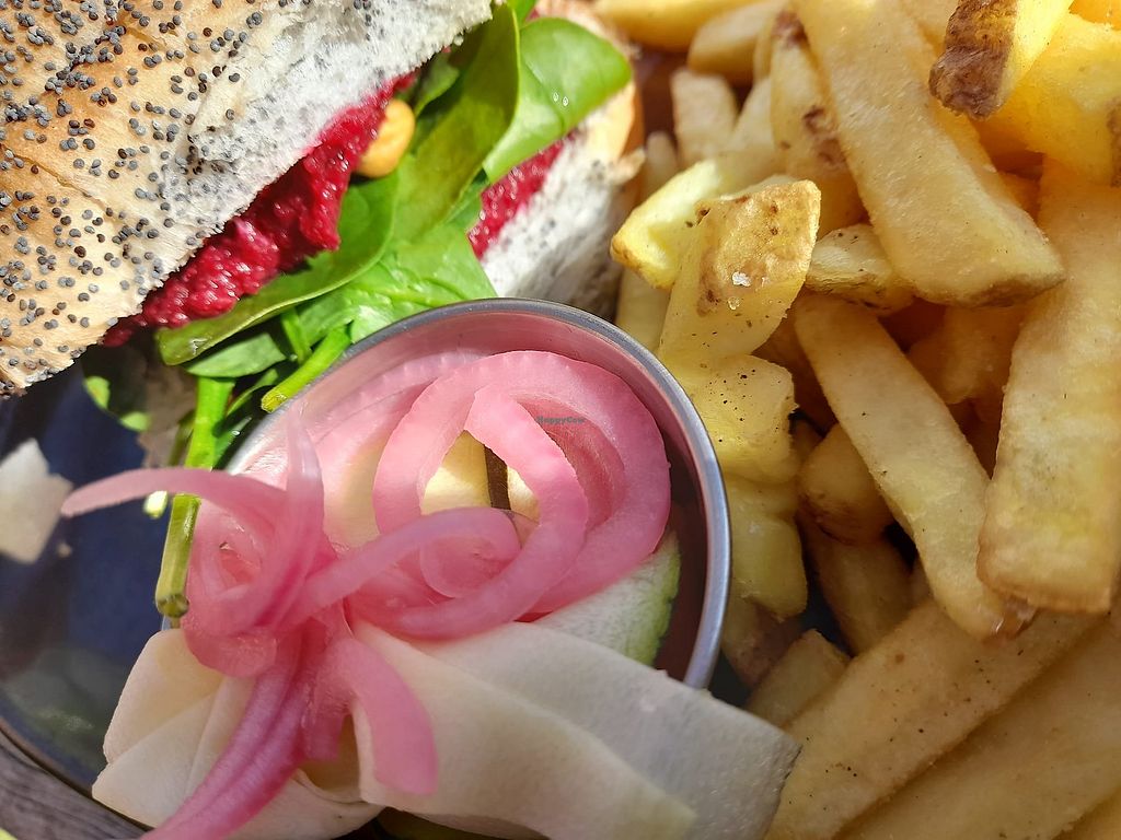 Very nice beetroot, hummus and crunchy chickpea sandwich 😋