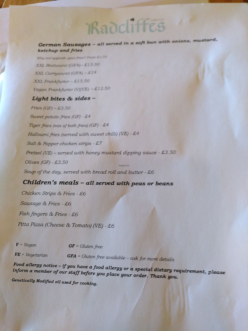 My issue here is on their menu they have a few items marked V and Ve as normal but here Ve means Veggie NOT Vegan as is the normal convention. Thought I could order loaded fries as marked Ve but no. So on their lunch menu as at 30/2024 you have a burger or kebab...