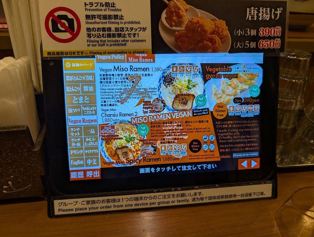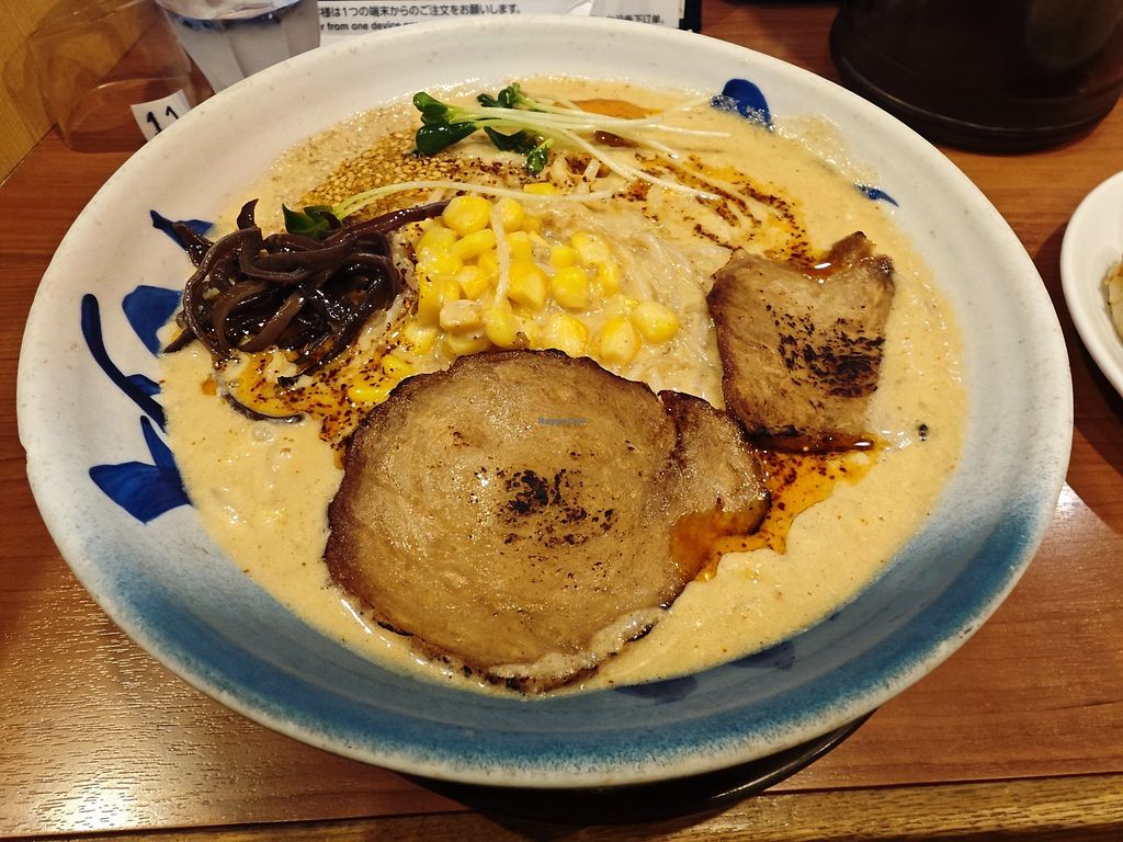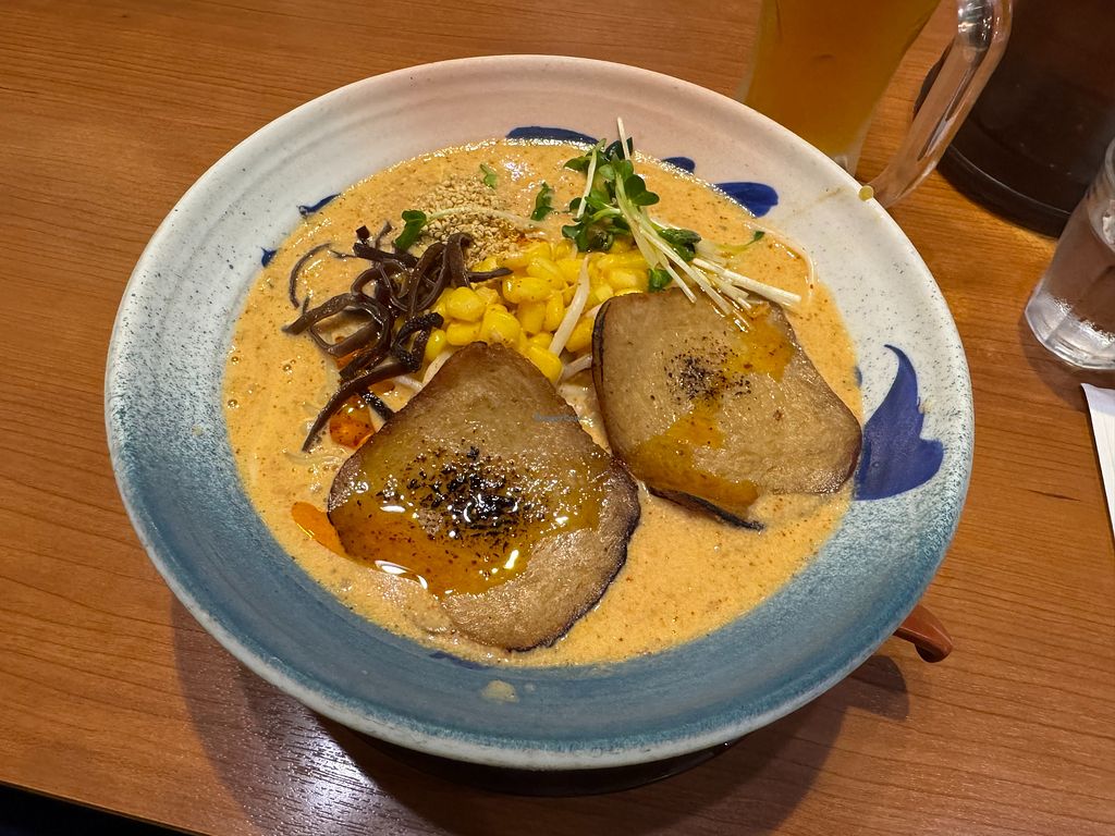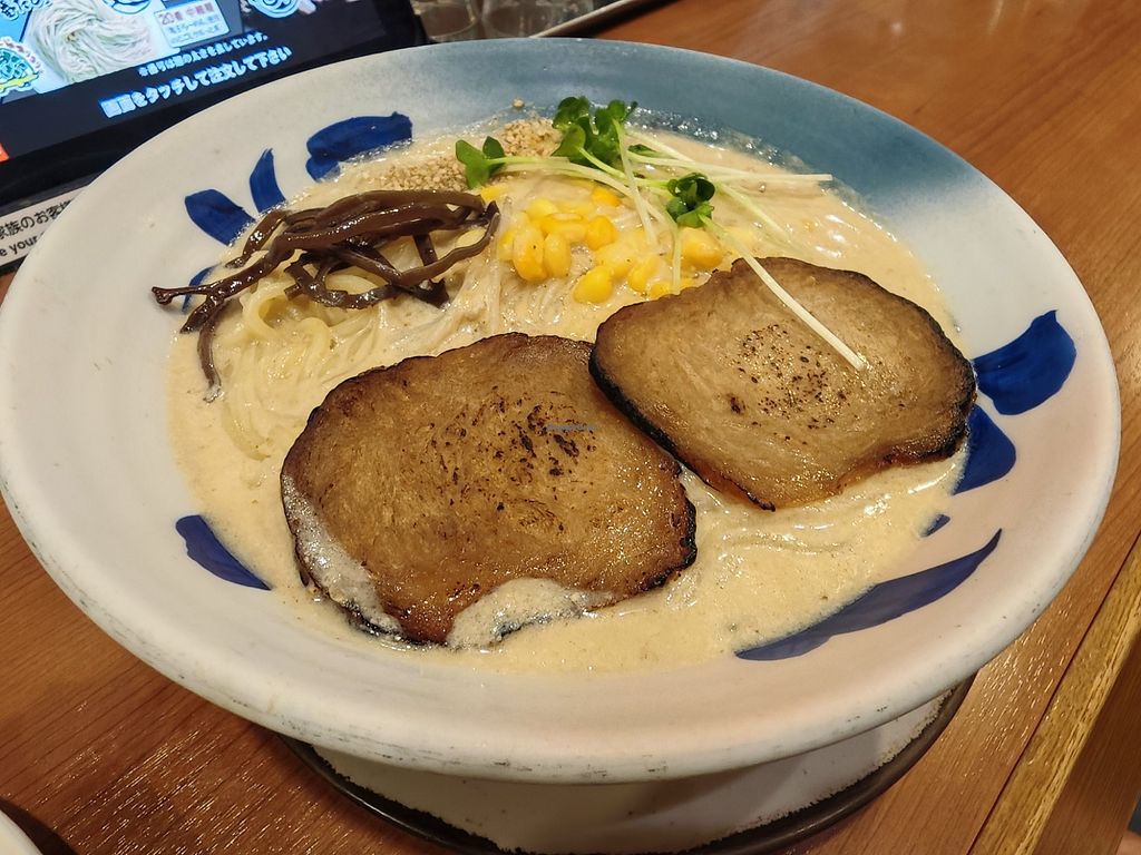 Not the tastiest bowl of ramen I've had in japan but not the worst either. They give 2 options (miso or spicy miso) and vegan gyoza. The portion size of the ramen was massive and kept me full all day!