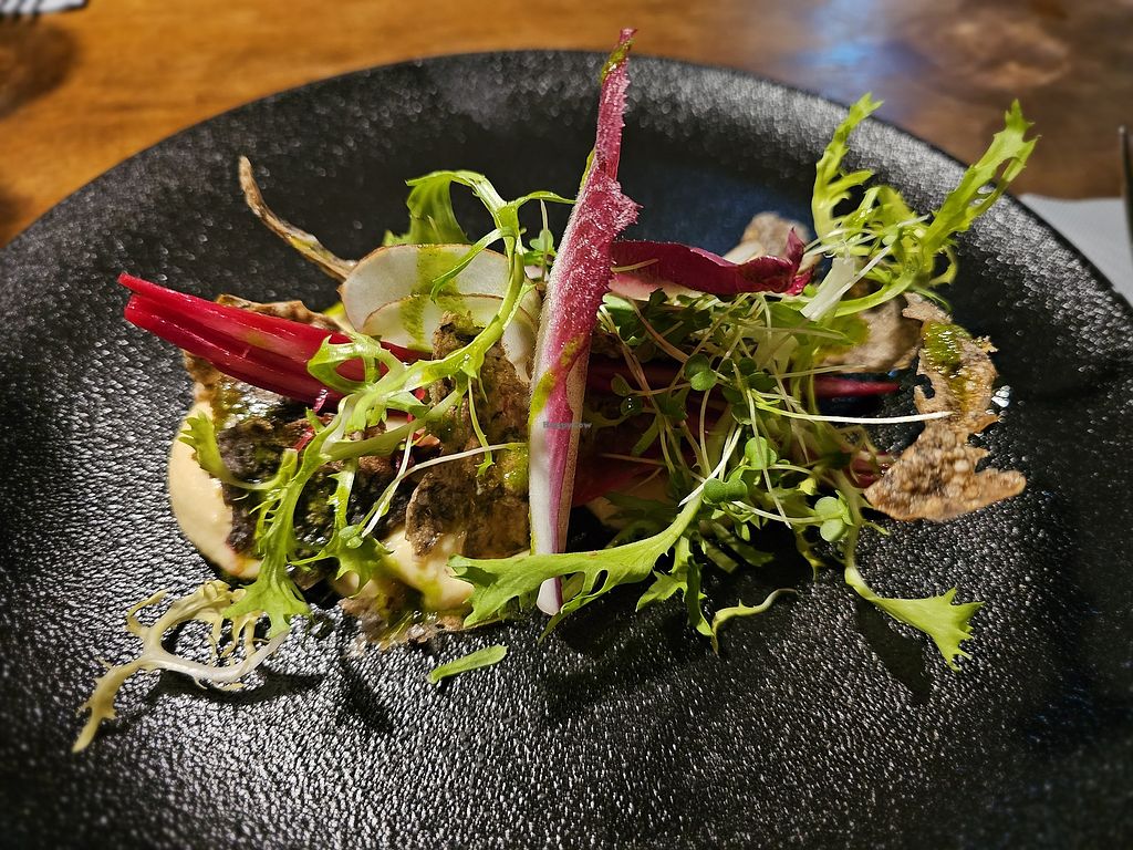 Great ambiance, fabulous service, and really tasty food. The house beer has a story behind it, so order it and ask. Had the white radish, and I don’t know what sauces they served with it, but omg, I needed more. Also loved that the sorghum was maybe toasted after it was cooked? Great texture. Tried the sea buckthorn cream for dessert because I had no idea what it was and it was delicious. Outstanding meal. I would have loved to have had a protein with it, though it’s not strictly necessary, but I would love to see what they could do with tofu though since they were so creative with a radish!