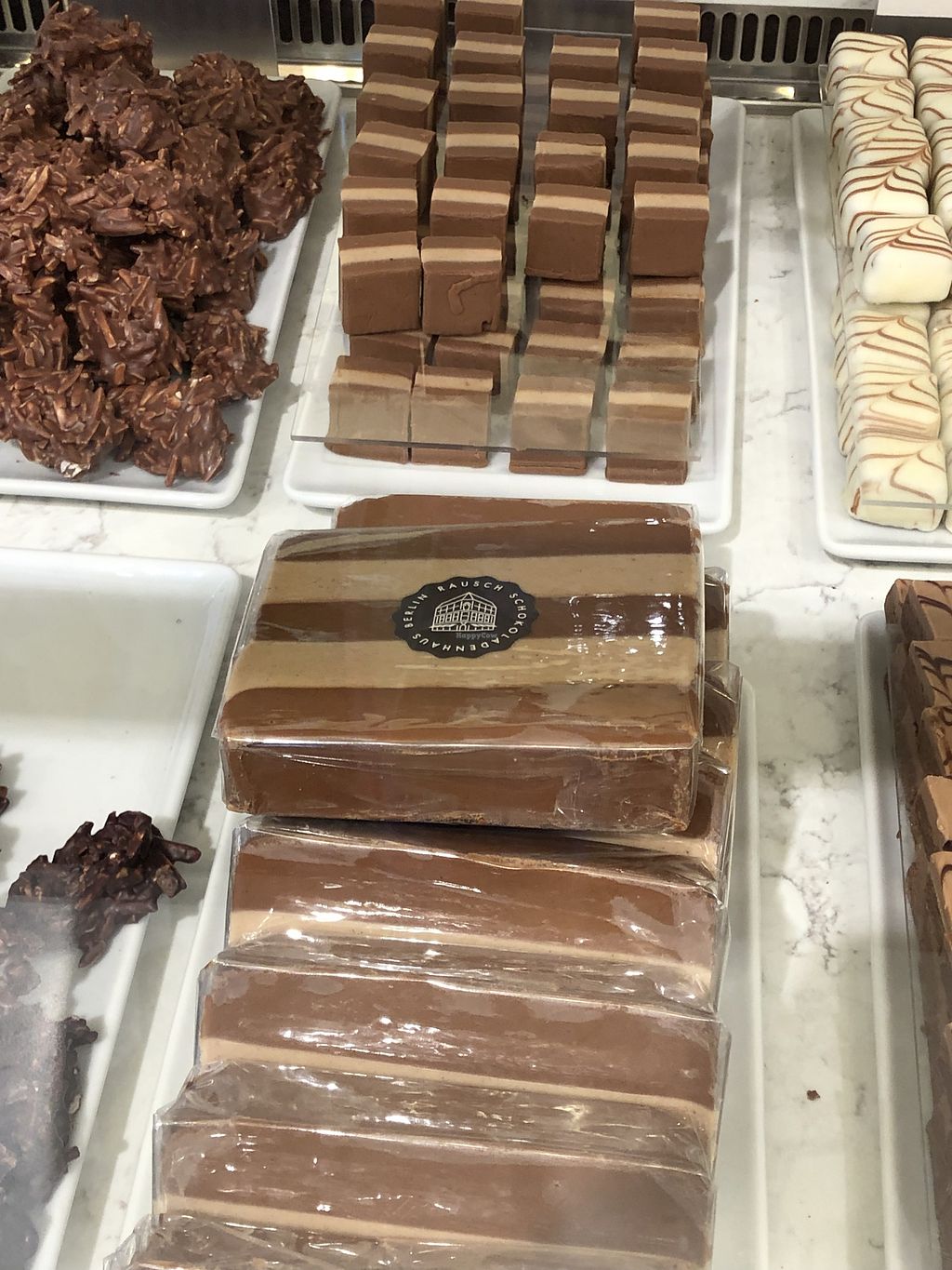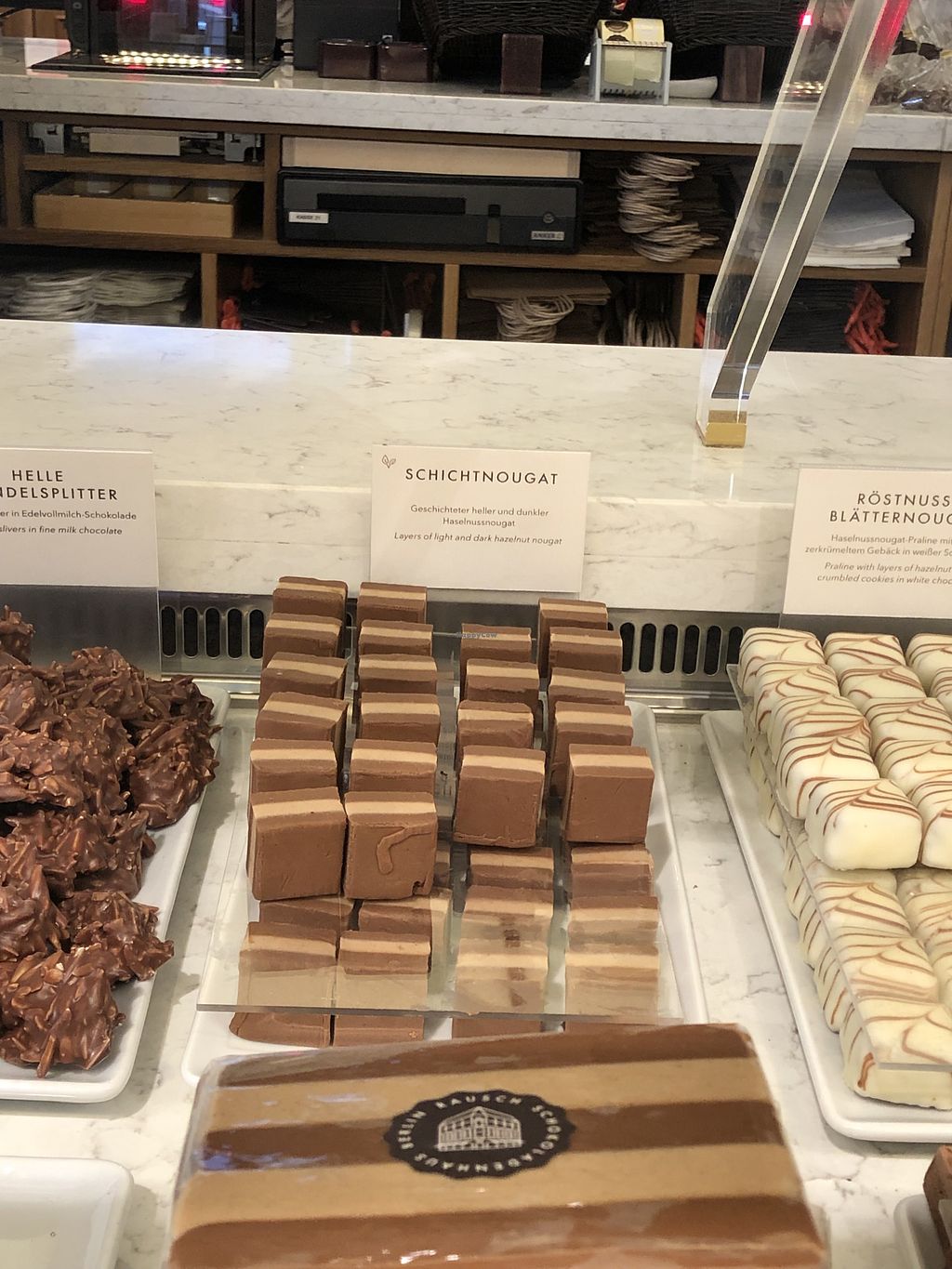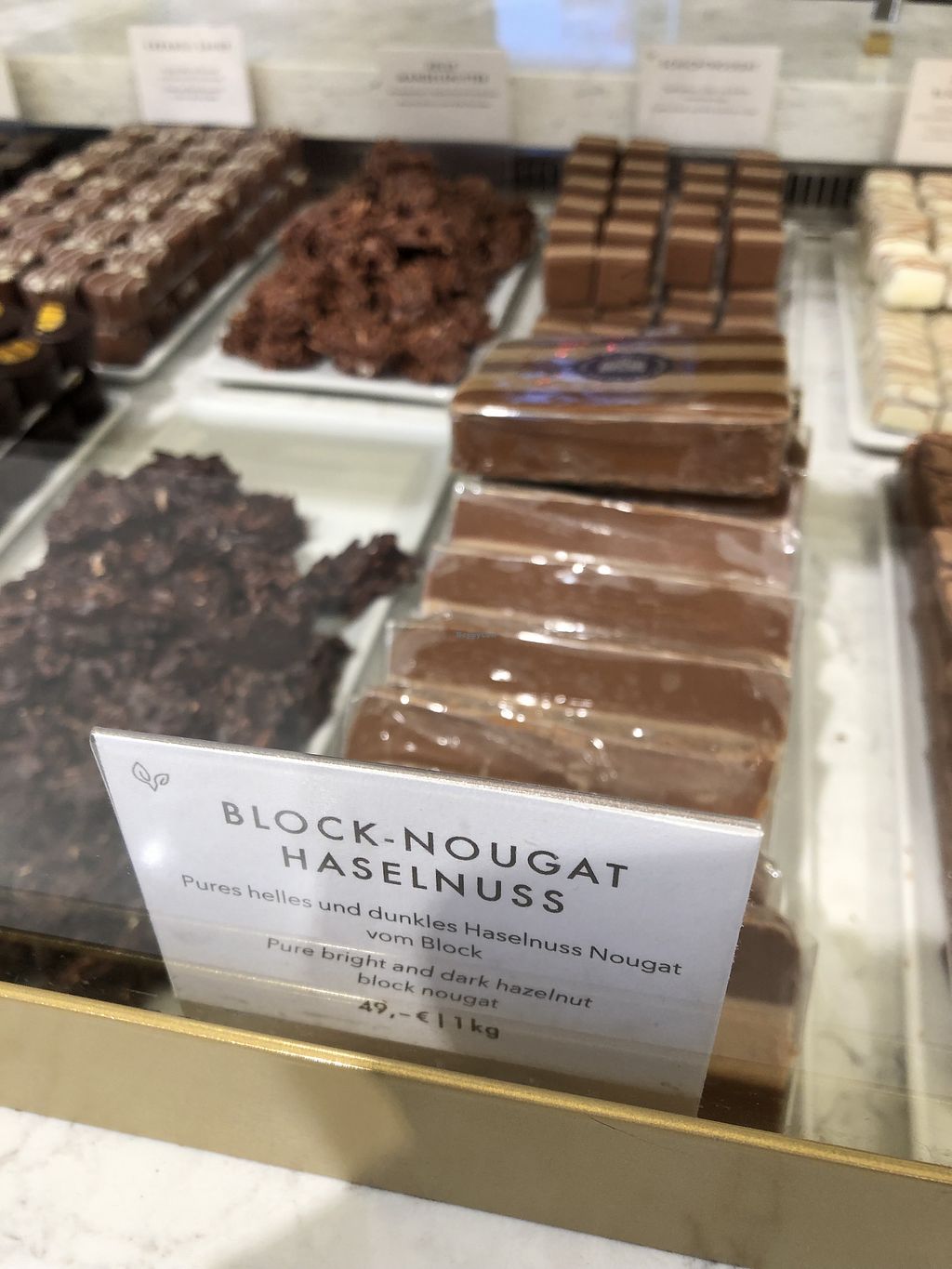 I visited the chocolate shop (not the café). Only dark pralines, but they're very nice. I counted 7 vegan options, they are clearly labeled.