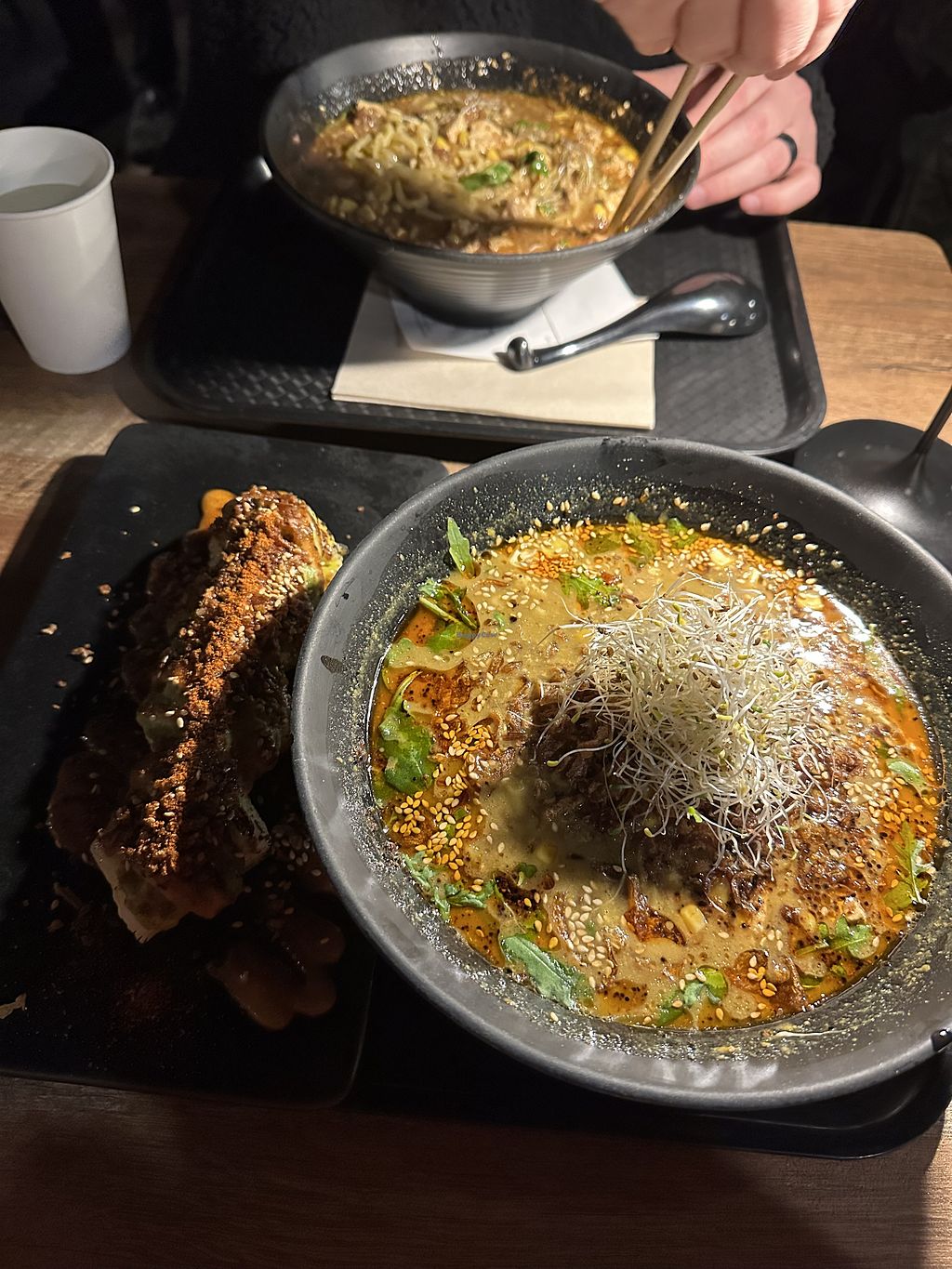 I had my eye on this place for a while, I’m happy that I finally was able to try it out. I got the No. 5 - Sesame yuzu (spicy) and an unsweetened green tea. With all due respect, as a person from Middle East, it was not spicy, perhaps it was American spicy… I did not feel anything at all in my mouth lol. It’s quite expensive but the portions were large.