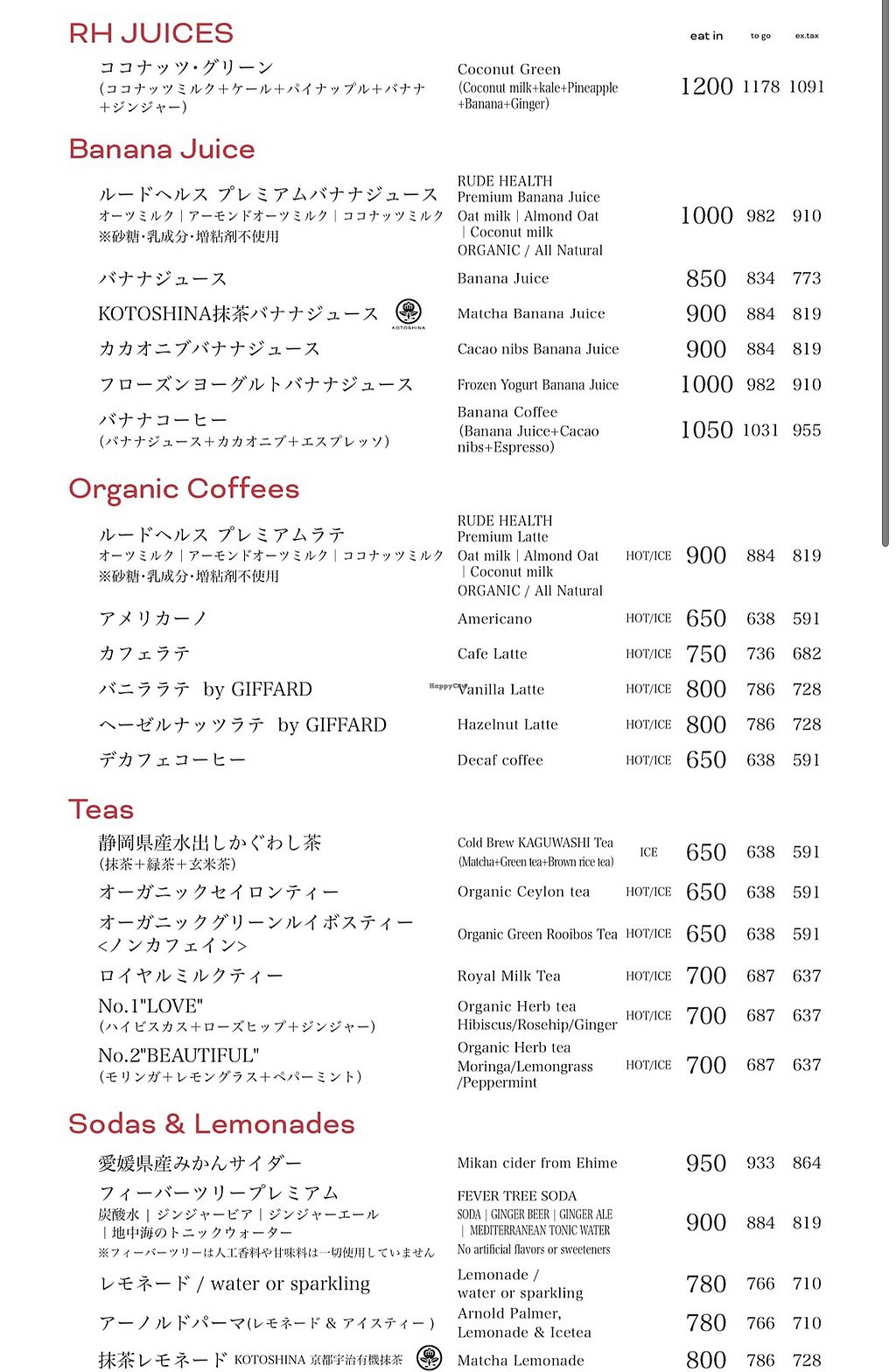 Serves meat, vegan options available. RHC Ron Herman's concept store features a cafe. Vegan rice bowl and some drinks with plant-based milk (banana juice, latte, etc.) Address: 豊洲2丁目4-9 アーバンドック ららぽーと豊洲 1F. Open Mon-Sun 10:00am-9:00pm.