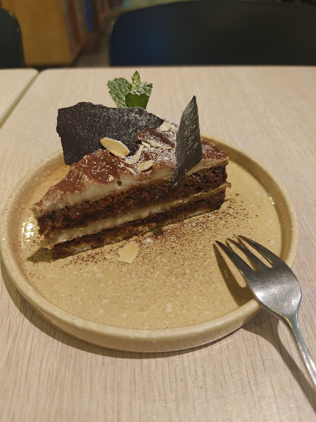 Good food although an over-use of tempeh. I wouldn’t choose the tempeh blocks again but we enjoyed the stuffed tofu in black bean sauce and the red curry (although odd to contains Brussels sprouts). They do desserts but we were full. Took biscotti home with us. No alcohol served.