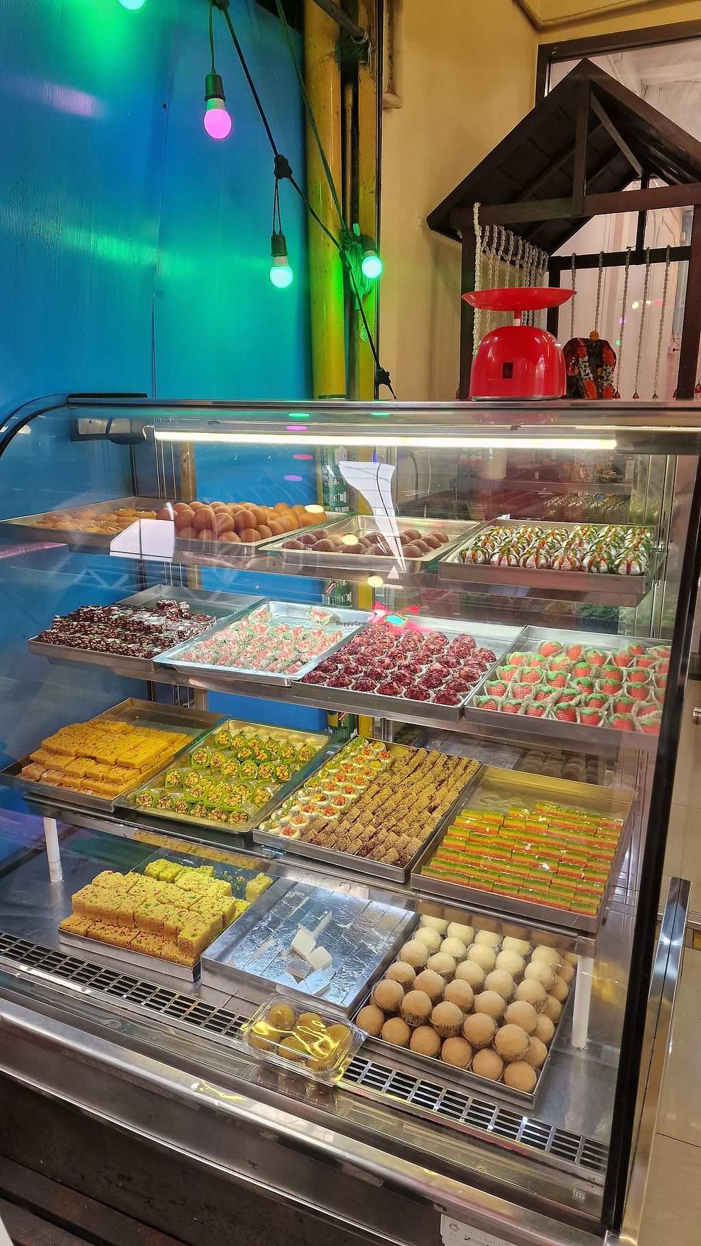 We were walking around the Indian area of Bangkok and we went to eat, we chose the Veg Thali to recharge our batteries and we got it, a very complete and tasty dish, but... don't make an effort to order no spicy... We also took some typical Indian sweets, but we were a bit disappointed because most of them tasted the same even though they had different ingredients, in theory. So, it is a highly recommended place for its many vegan options.