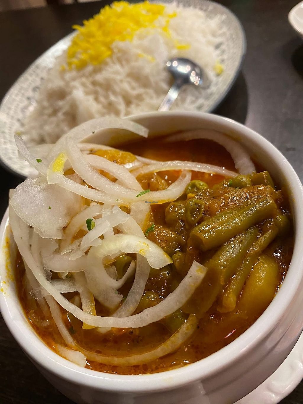 Serves meat, vegan options available. Afghani restaurant offering items that can be made vegan such as dhal, curries and entrees. Open Mon-Sun 5:00pm-9:00pm.