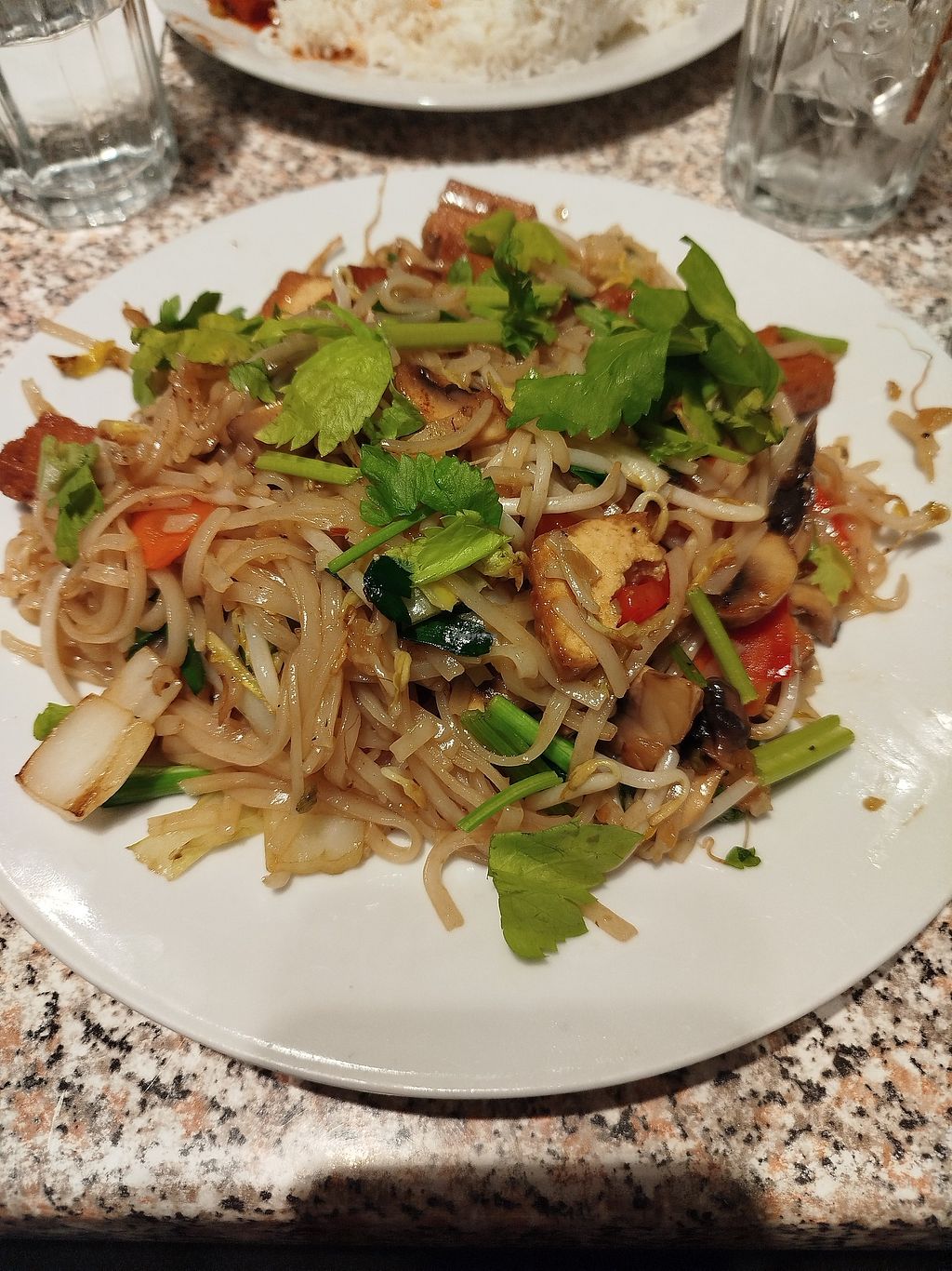 This asian restaurant has quiet (maybe cosy) atmosphere with good asian food. With all kinds of food they can replace the meat with tofu on request. There are also many vegetarian dishes on the menu.
