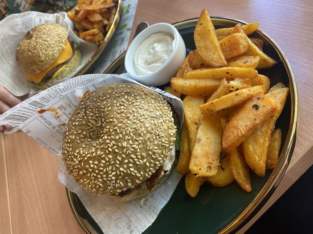 There aren't many fully vegan places in Bucharest so it's nice that this place exists, but the food is not very exciting. We ordered a delivery. The burgers were okay, but we ordered several different ones and they were all exactly the same. The pasta is served cold (as in refrigerated), which was weird and unexpected. There are no fries or potato wedges or anything like that to go with the burgers, which is also a bit strange.