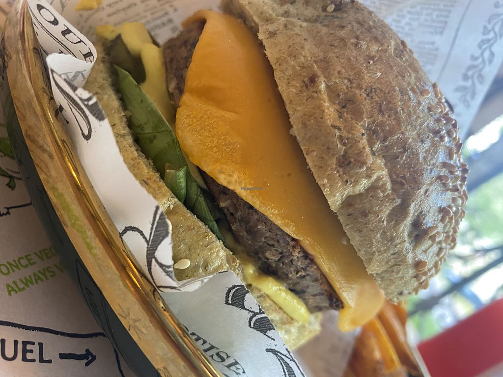 They told me everything is vegan, so not sure why this place is listed as vegetarian. Anyway burger was delicious, chocolate cake amazing, banana bread wonderful. It is a permanent food truck on a busy road with a few chairs and tables. I got take away for the park a few blocks away, which was nice! I highly recommend!