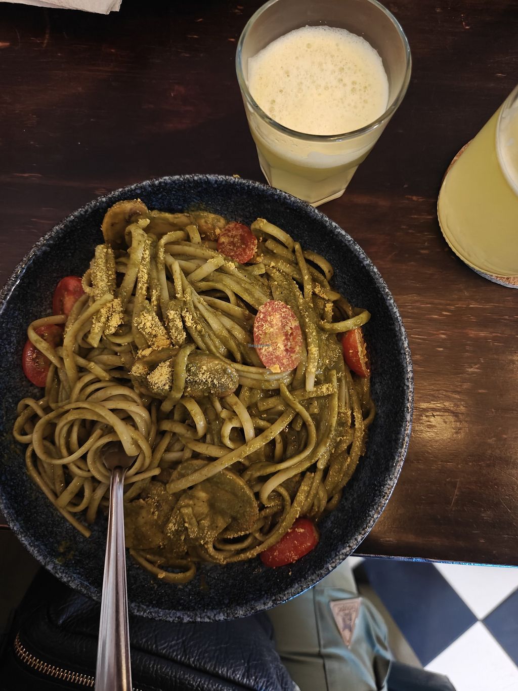We came for lunch and for drinks we had an iced matcha latte and an iced cappuccino (very good). For food we had the plant power bowl and the pasta a la huancaina, which both were really tasty!