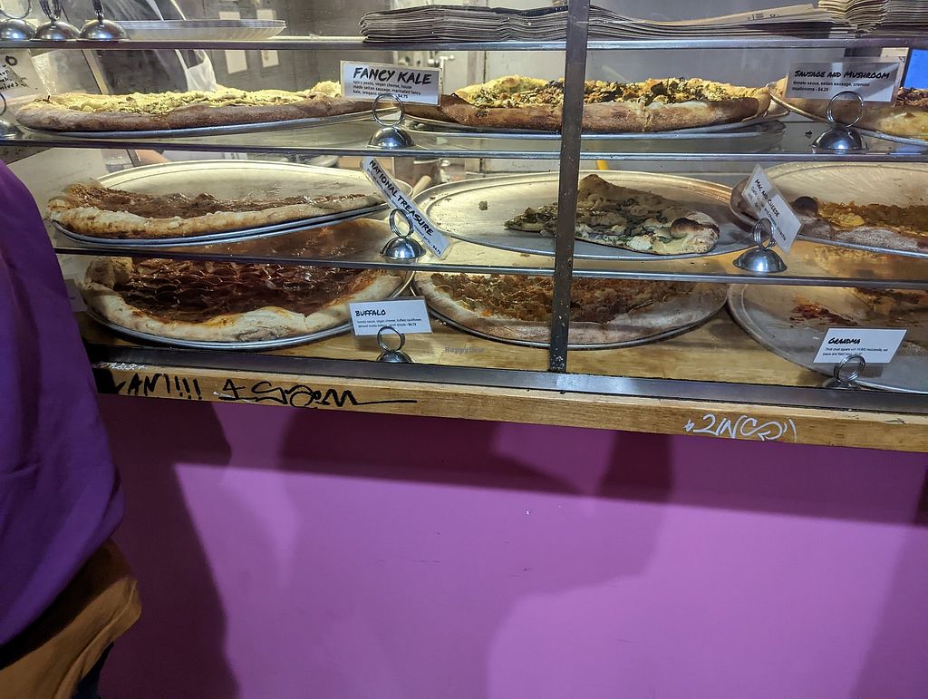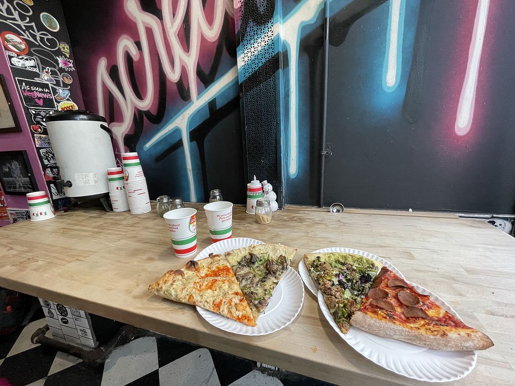 Run-don’t walk to this delicious pizza place! This location has plenty of vegan pizza BY THE SLICE! If you see a grandma slice (square) BUY IT BC IT THEY ARE FEW AND FAR BETWEEN! Standouts include: The Screamer, Cheese Pizza, and white pizza slice.