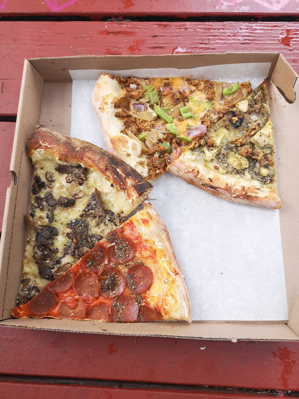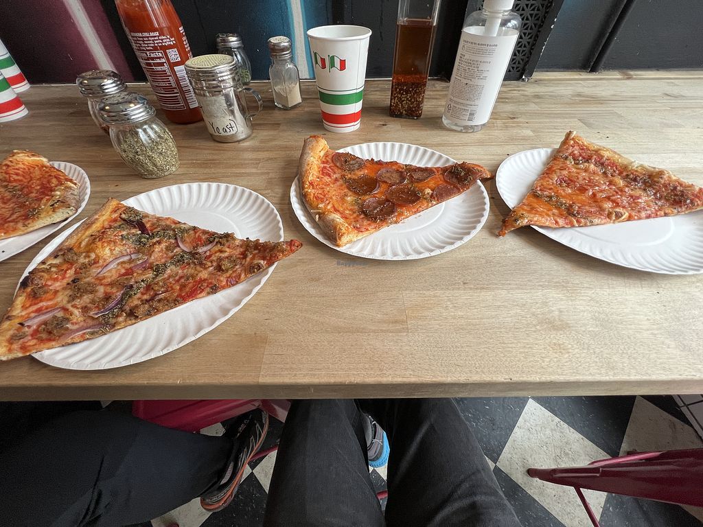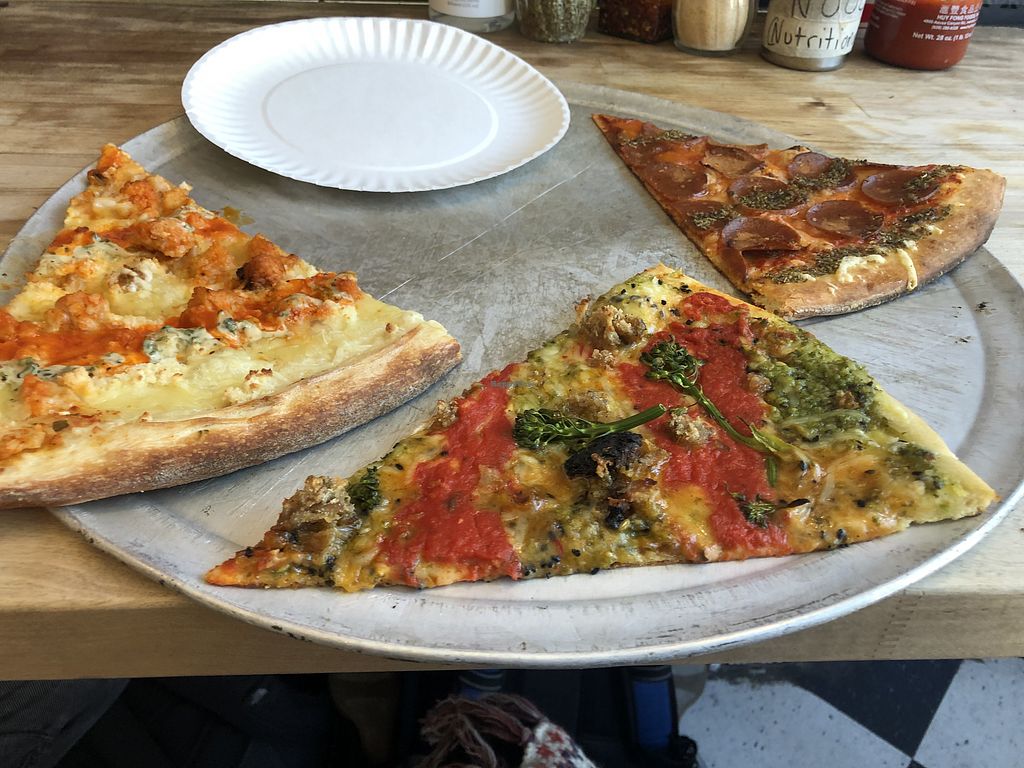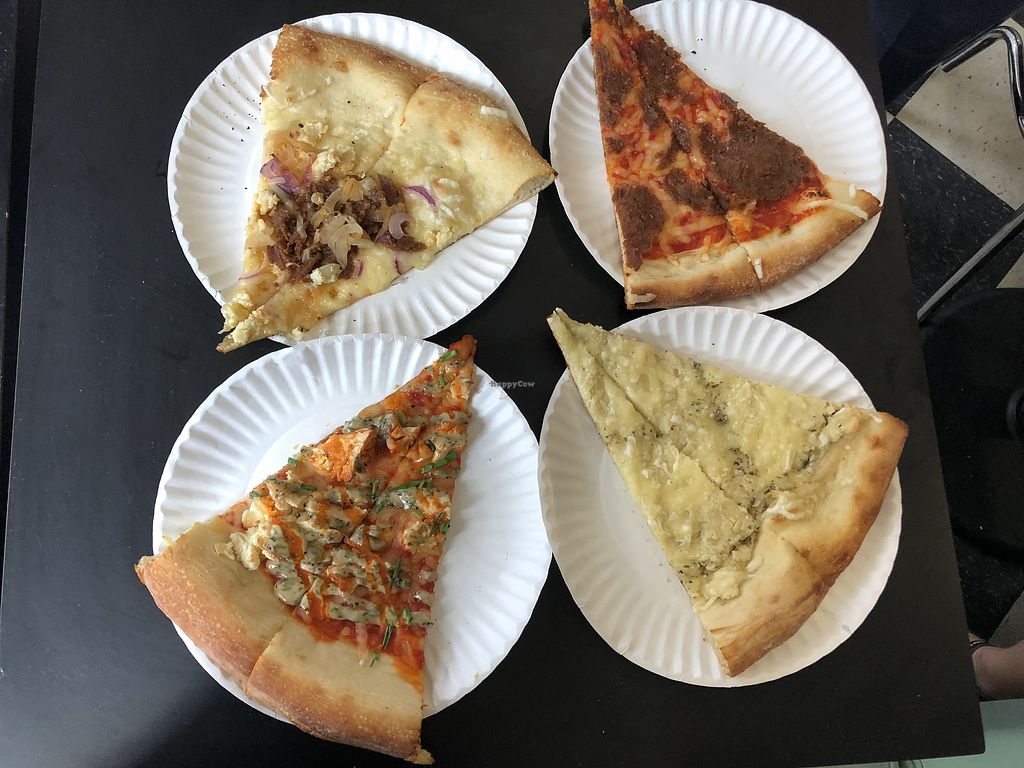 Vegans, rejoice! We are no longer left out when it comes to getting a slice in NY. I had four different slices (pictured) and they were delicious. I had help eating them, as four is too many for one petite person! I'll be back.