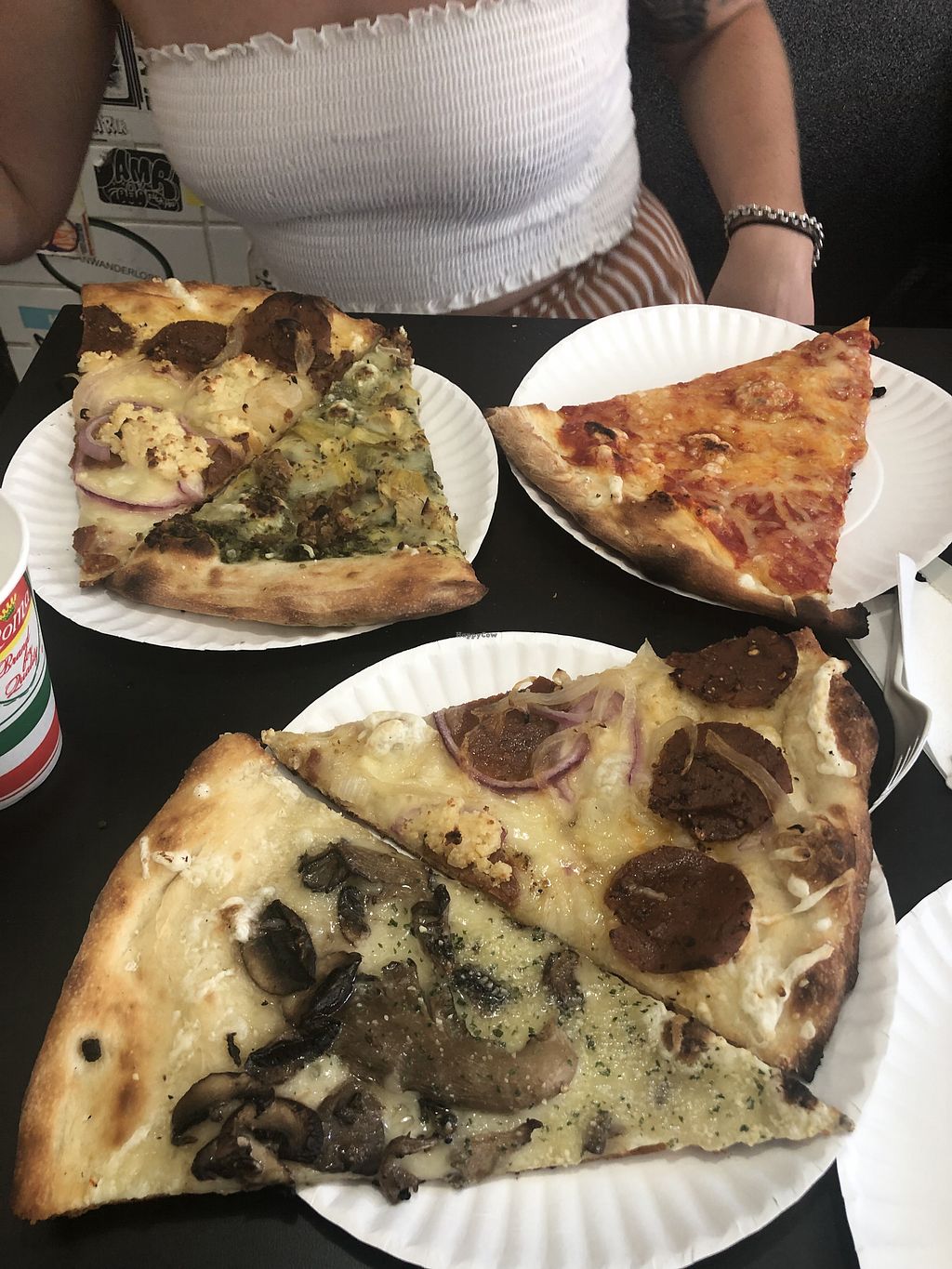I came here with my boyfriend while on vacation. The pizza burnt my fingers because the cheese and tomato dripped off completely. The cheese and tomato sauce did not even stay on. I’ve had vegan pizzas in other places and I’ve never had the issue of the cheese and tomato sauce dripping off.