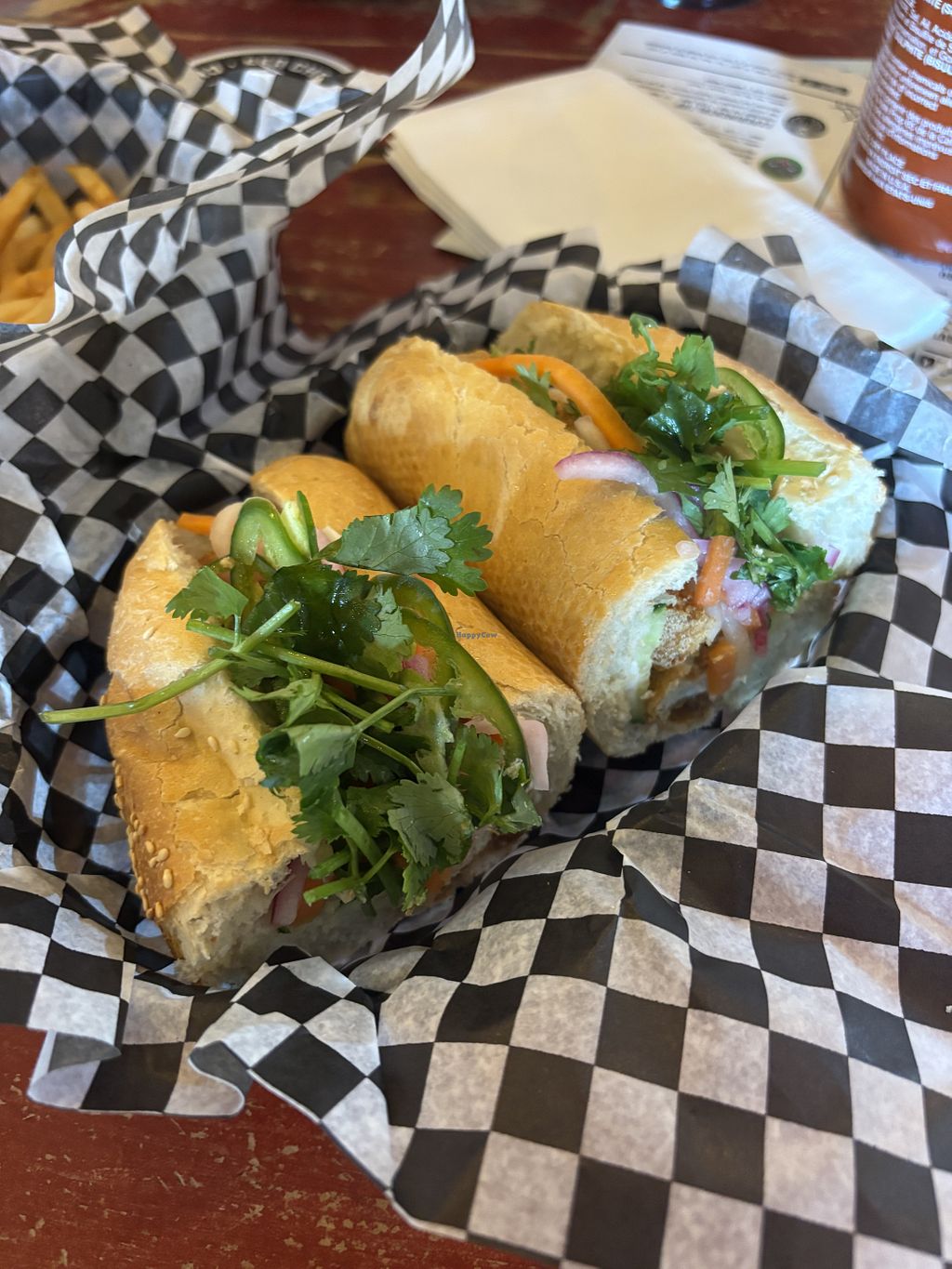 Very cool, little brewery. Was happy to see a few vegan options. I went for the crispy tofu banh mi. The tofu and veggies were delicious. The bread..could use a little upgrade. The staff was great. Super pleasant. Good music on top of it all.