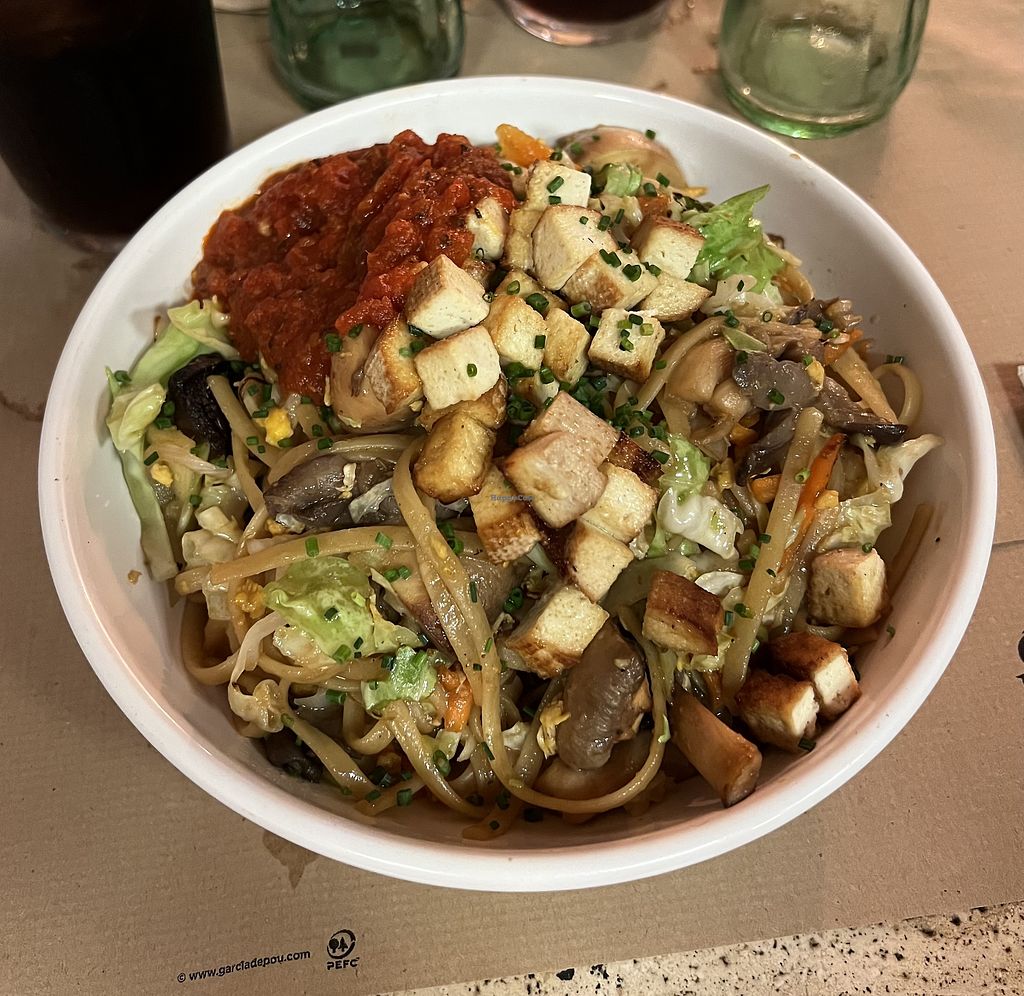 You make your own wok with many vegan options available, such as greens, noodles, tofu, algar, shiitake... Very tasty and delicios. Also the waitress is charming. Beware of the "lava volcánica" sauce, its really really hot!
