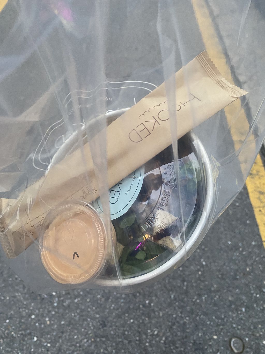 There are only 2 vegan bowls so I opted for tofu and added avocado. This was a very healthy bowl with great mix of lentils, chickpeas, brown rice, lettuce, etc. Only small amount of dressing on side. Really felt like a good boy 😇.