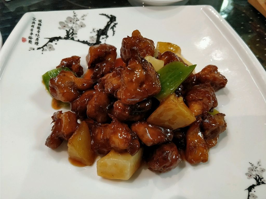 Huge place with nice dining rooms and tables, air conditioned. Huge menu with pictures, has lots of mock meat dishes. Dishes come out really fast, nice service as well. Food has lots of flavours but greasy.
