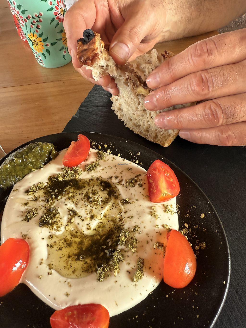 Unique restaurant situated in a pastoral village with beautiful ocean views overlooking the city of Hadera in the distance. A family run establishment that feels like a home away from home. The atmosphere, the decor, the music, the attention to details, a truly unique place. And the food…. we had 2 different breakfast sets, both incredible - delicious, fresh, clean feeling and just a celebration of flavors and aroma. And the desserts, they have a cooler full of mouth watering desserts and pastries that really made me regret being so full, or I would sample them all. I can’t find words to describe how perfect our experience was, a once in a long while celebration 💫