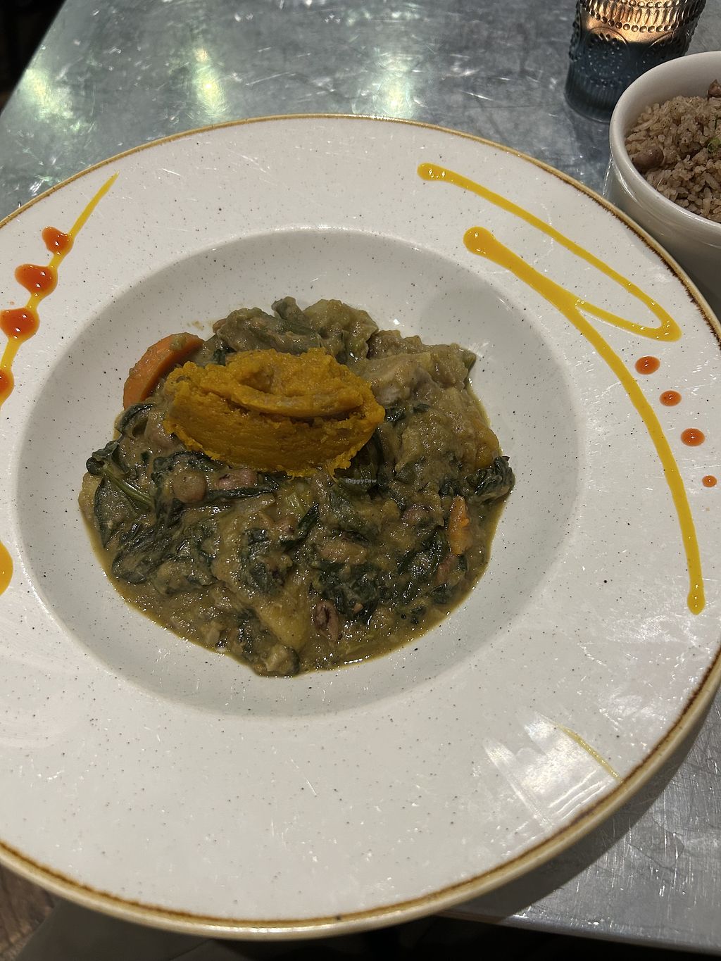 Amazing food and the waitress was very nice. 3 of us had the black rice and ackee and we all really loved it. Well presented and very tasty. Awesome cocktails although the up in smoke wasnt the best (but very fun to watch!)