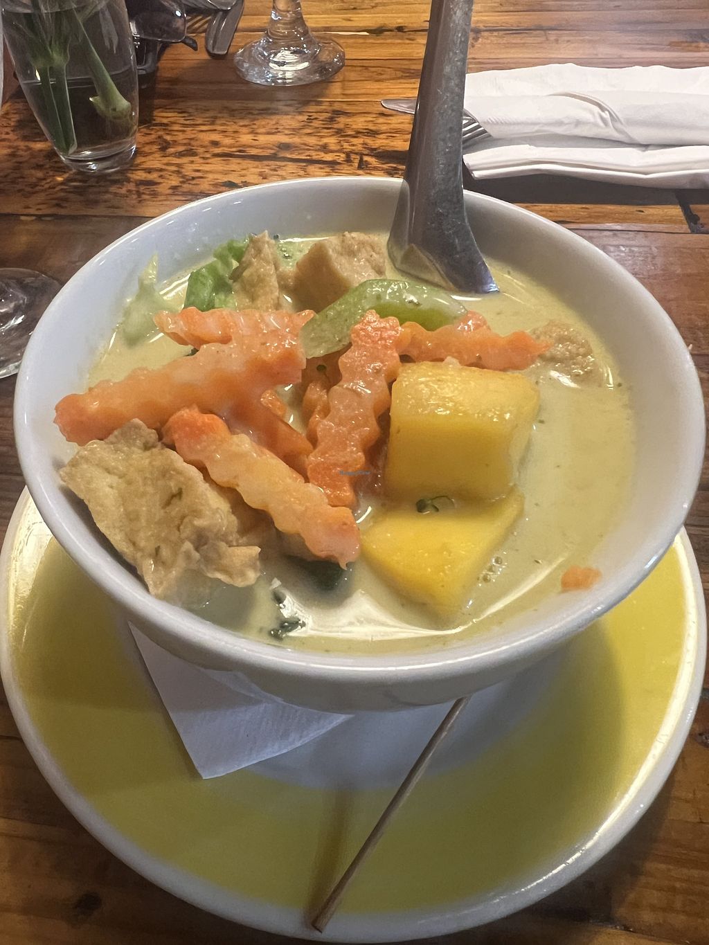 Ordered spicy basil and mango curry. Asked for vegan style (no fish/oyster sauce and no egg) (in description of online order) . Good takeout Thai food