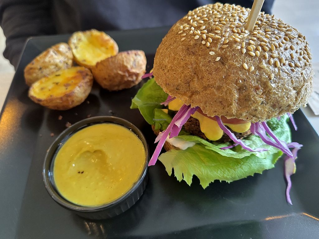 Seitan wrap was amazing, plus it was a good deal as we had it as a daily set with soup for 10€. The cakes were delicious too, but 6-7€ for a small piece is a bit much. Some cakes they offer on the menu were not available that day so the selection is narrower than it seems. In any case, it's great that such a vegan place exists and it's worth trying it.