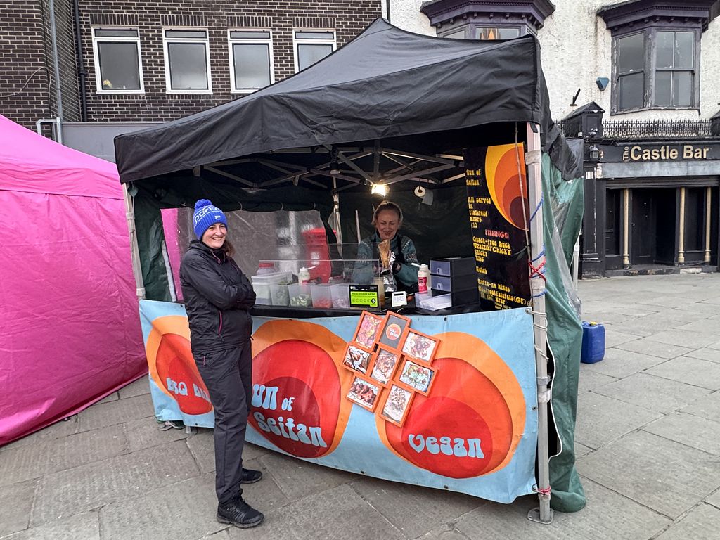 We discovered Sun of Seitan at Tynemouth market on Saturday. Well worth venturing out in the snow for! We were with 2 visiting friends who aren't vegan, but they were converts. The woman running Sun of Seitan was so lovely and friendly and didn't mind changing the wrap fillings for my picky eating habits. Between the four of us we had two rib wraps and two duck wraps - the best seitan my partner and I have ever had (and we've tried a lot..!!) My partner was determined to go back and try the burger but he was full (a rare occurrence let me tell you..) so we'll just HAVE to go come back again sometime. Thanks so much!