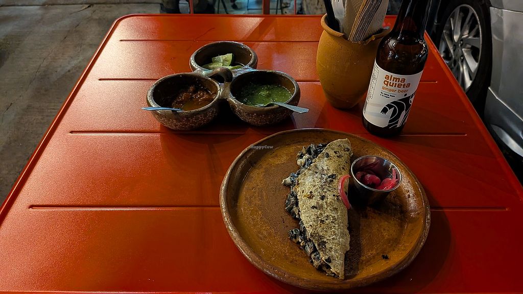 Delicious! First time eating at Taco Santo and can’t wait to go back! Was thrilled to have piping hot “gringas” with chickpea chorizo and soft melty vegan cheese. This is exactly the vegan Mexican food I love - nothing processed, no junk, just whole food prehispánico ingredients. Was such a happy treat to have sopa de tortilla. Reunited with my childhood favorite, plant based version and every bit as satisfying. Friendly service, quaint sidewalk location.