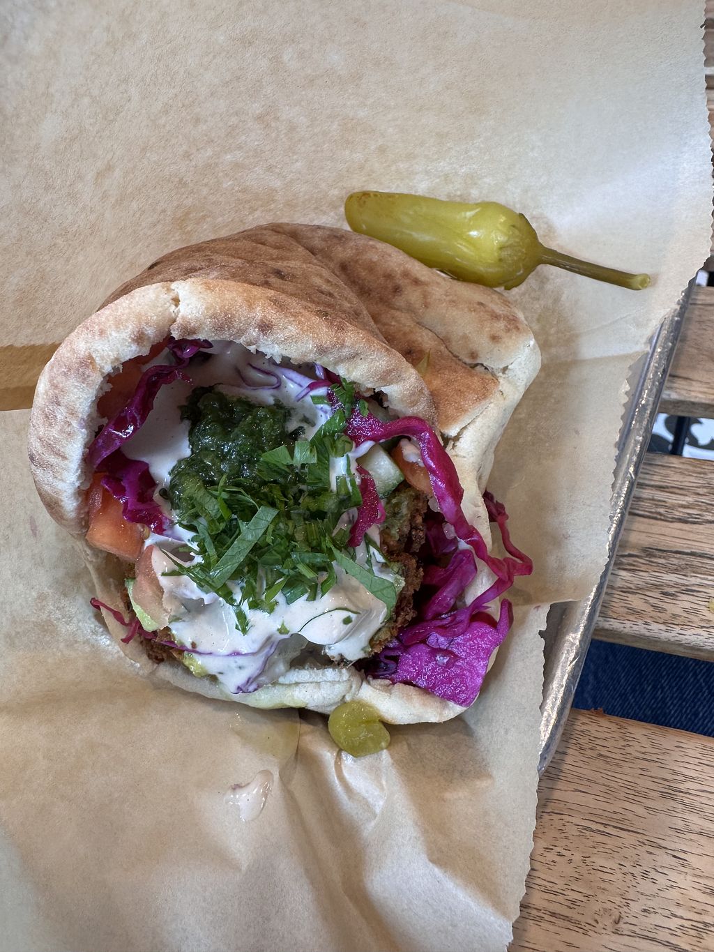 I was in the neighborhood, and saw this place was highly rated, so I decided to try it. I usually don’t eat falafel unless it’s the only vegan things on the menu, but I’m really glad I tried it. It wasn’t too heavy and had plenty of flavor. I asked for it with everything including Zhug and was very pleased. I would definitely return to try the cauliflower.