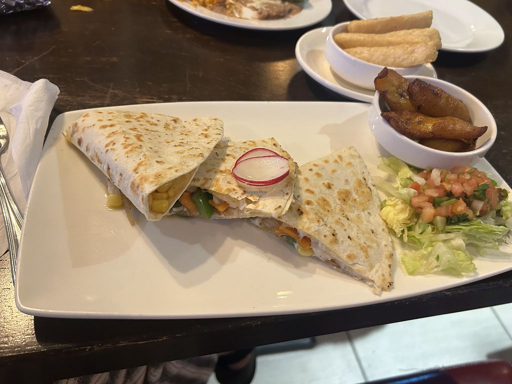 Read moreI got the veggie quesadilla and added vegan cheeze, with a side of guac and yucca fries and got the plantains instead of rice and beans