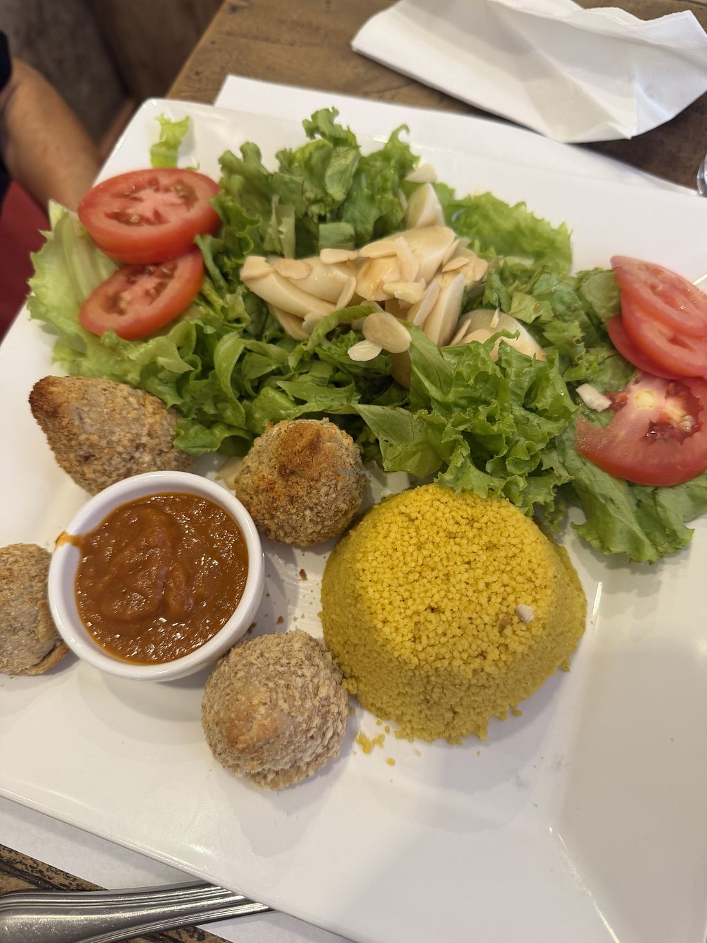 Provei o Taste Árabe, com hummus babaganoush, tabule, quibe assado, kafta de carne vegetal e quinoa, pão sírio. Tbm tinha entrada (salada ou sopa) e sobremesa gratuita. Gostoso, bem servido e bom atendimento.