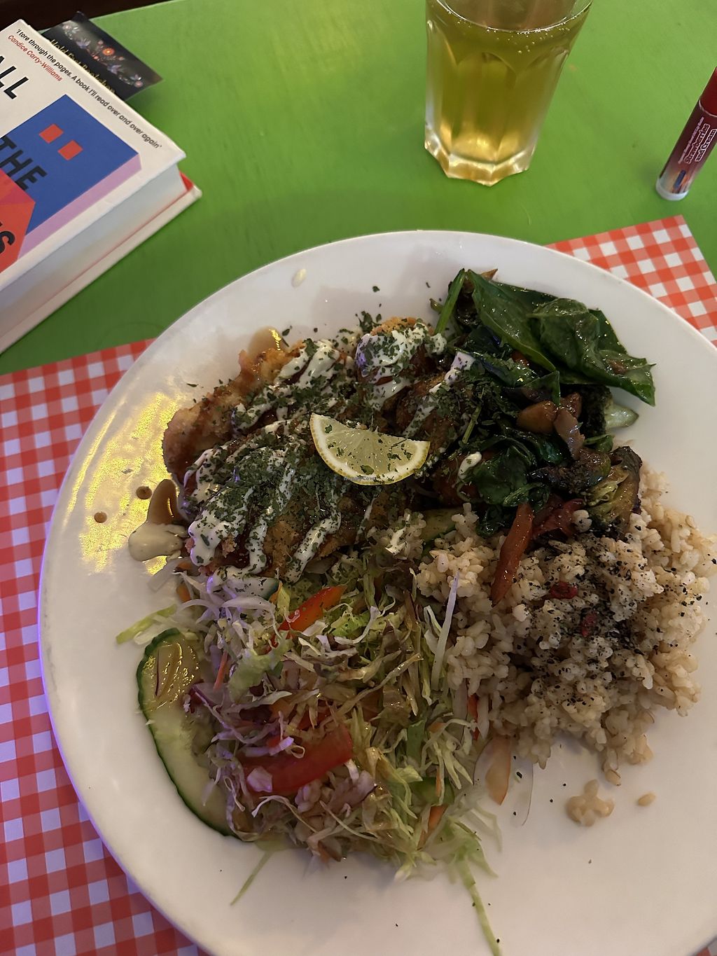 My partner and I really like the food here, mostly the japanese okonomiyaki. Its not all too expensive. The vibe is very chill vegan. Don’t come here if you’re in a hurry tho! The service and food isn’t very fast..