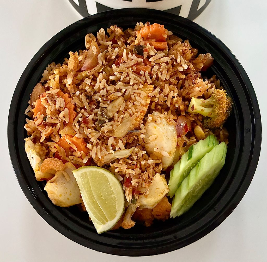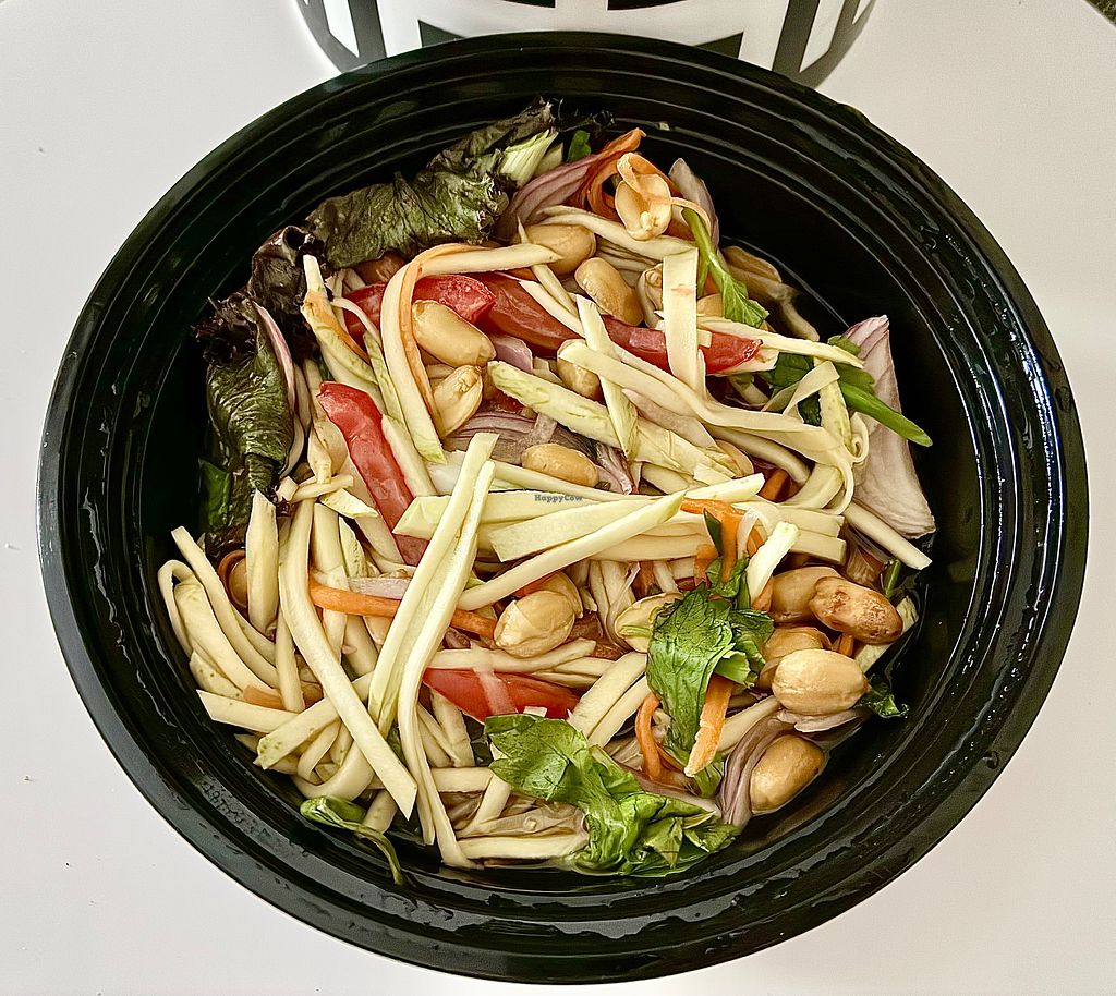 Serves meat, vegan options available. Thai restaurant offering items that are or can be made vegan such as tom kha soup, kaeng keow wan, kaeng phed, po pia tod, yum mamuang salad, pineapple fried rice, garlic rice, phad Thai noodles and kao neaw ma muang. Open Mon-Sun 11:00am-12:30am.