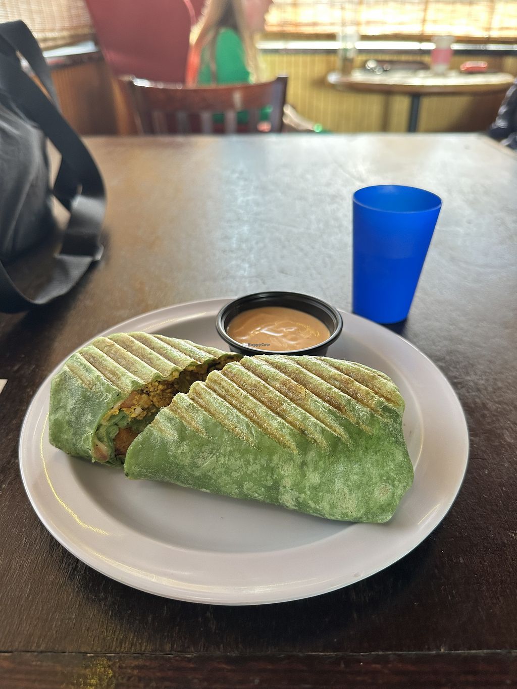 I ordered a Treehugger breakfast wrap (Tofu Scramble, Bell Peppers, Onions, Spinach, Breakfast “Sausage,” Tomatoes, Tater Tots, Cheese) and it was satisfying, my partner got a Vegan biscuit with Just Egg & Cheese and it's quite small but for the price of $5.10 it seemed about right and he was really happy about it.