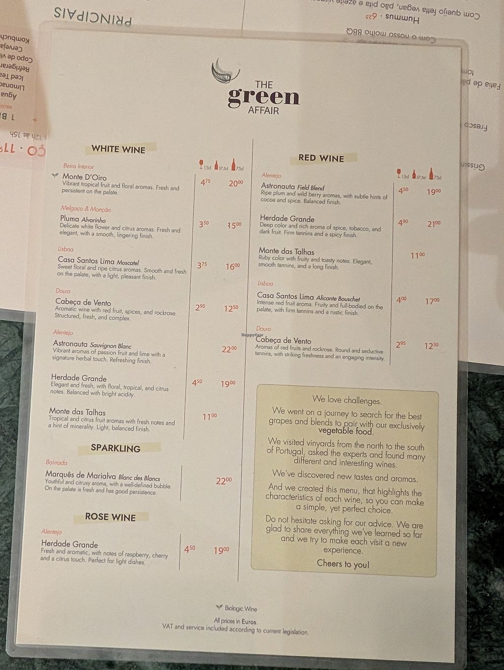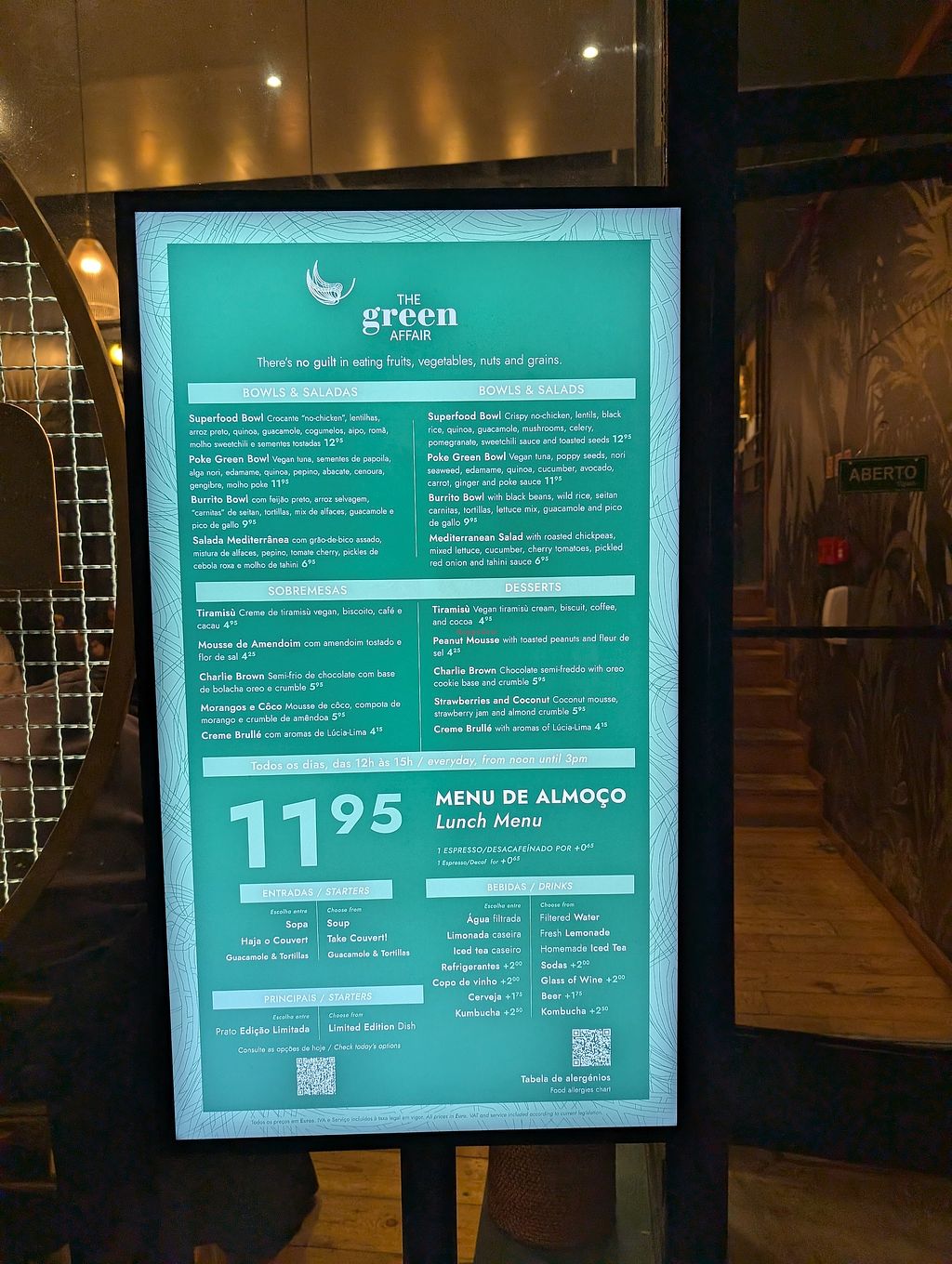 We ate here last night for dinner and had never eaten at a Green Affair before. The portion sizes were perfect and the food was tasty…… Everywhere was clean and basically there was almost nothing wrong with it. One criticism we both had was that the place felt like it had ‘a lack of soul’. We were relatively early for dinner (19:30) by Portuguese standards, we were all done and dusted within 30 mins and we both had starters and mains. We felt the service could have been more engaging with a slight pause between courses would have been appreciated.