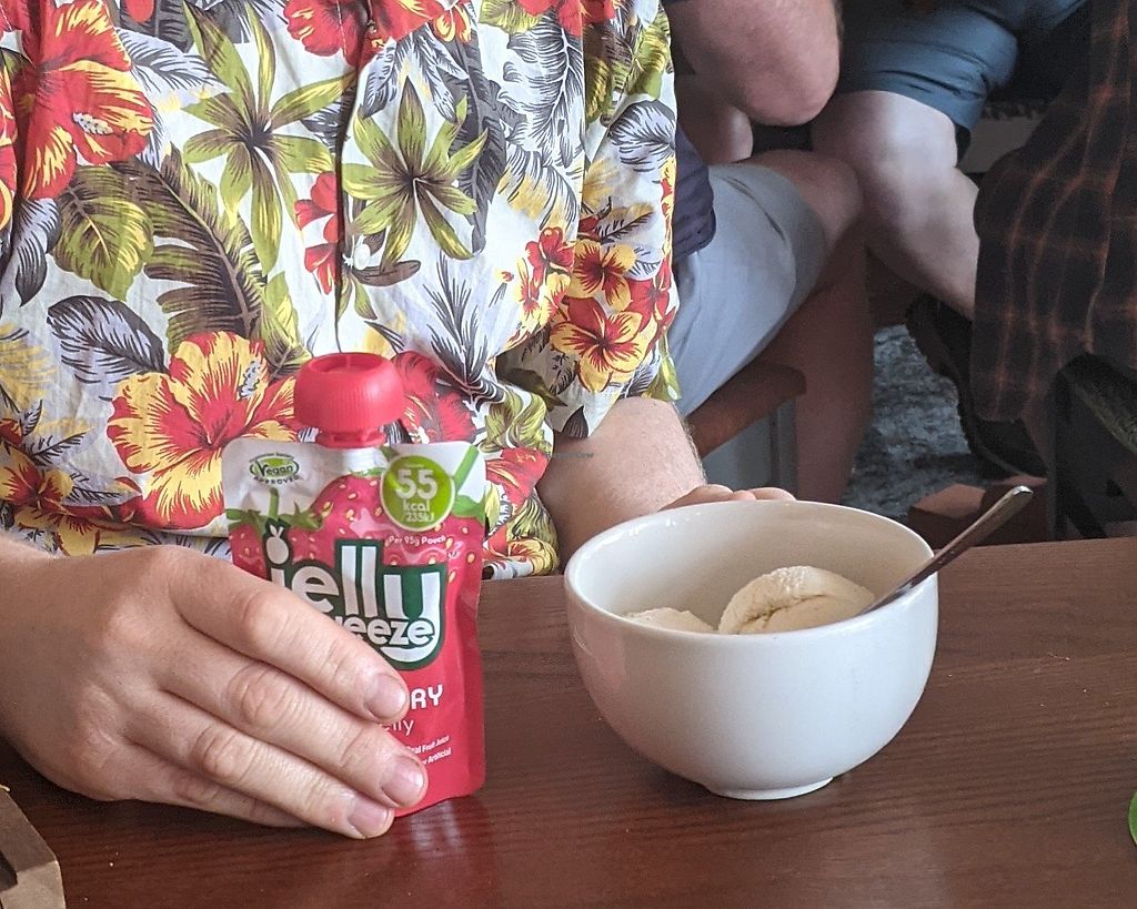I'm not sure why I braved a dessert, but warm Bakewell tart with vegan ice-cream was too tantalising. Sadly the tart arrived so hard that I had to use both hands on my spoon to break it . Probably just microwaved for too long. Friendly locals erupted into a shouty disagreement. Avoid!