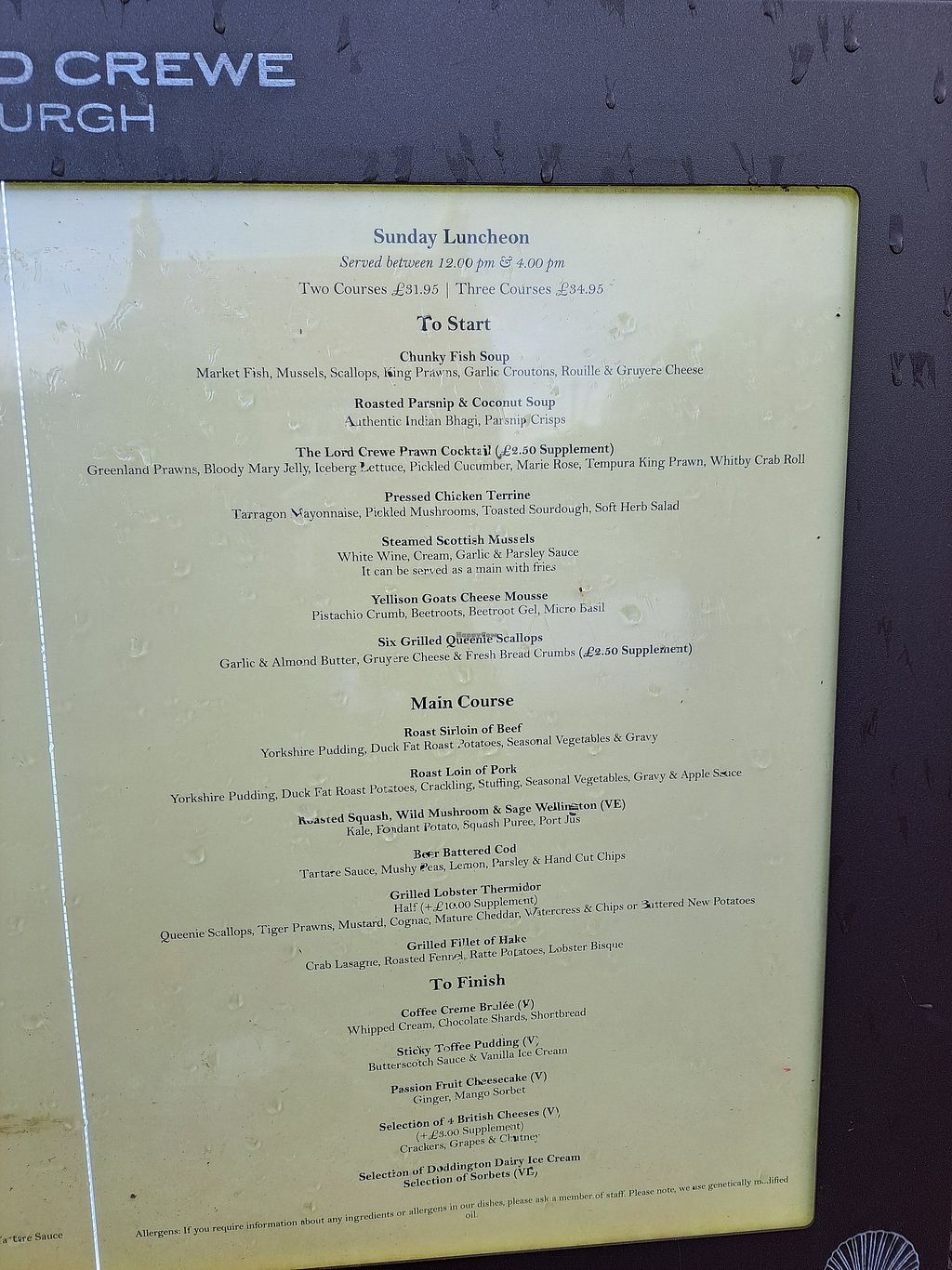 We booked for a family Sunday lunch (first visit back up to the NE for over a year). Before booking I called to confirm they could cater for the whole party as per the sample menus on the website, which included a vegan roast. On arrival there was no vegan roast: there was courgette and couscous. Whilst I'm sure this was fine, it wasn't what was expected not confirmed via the call.