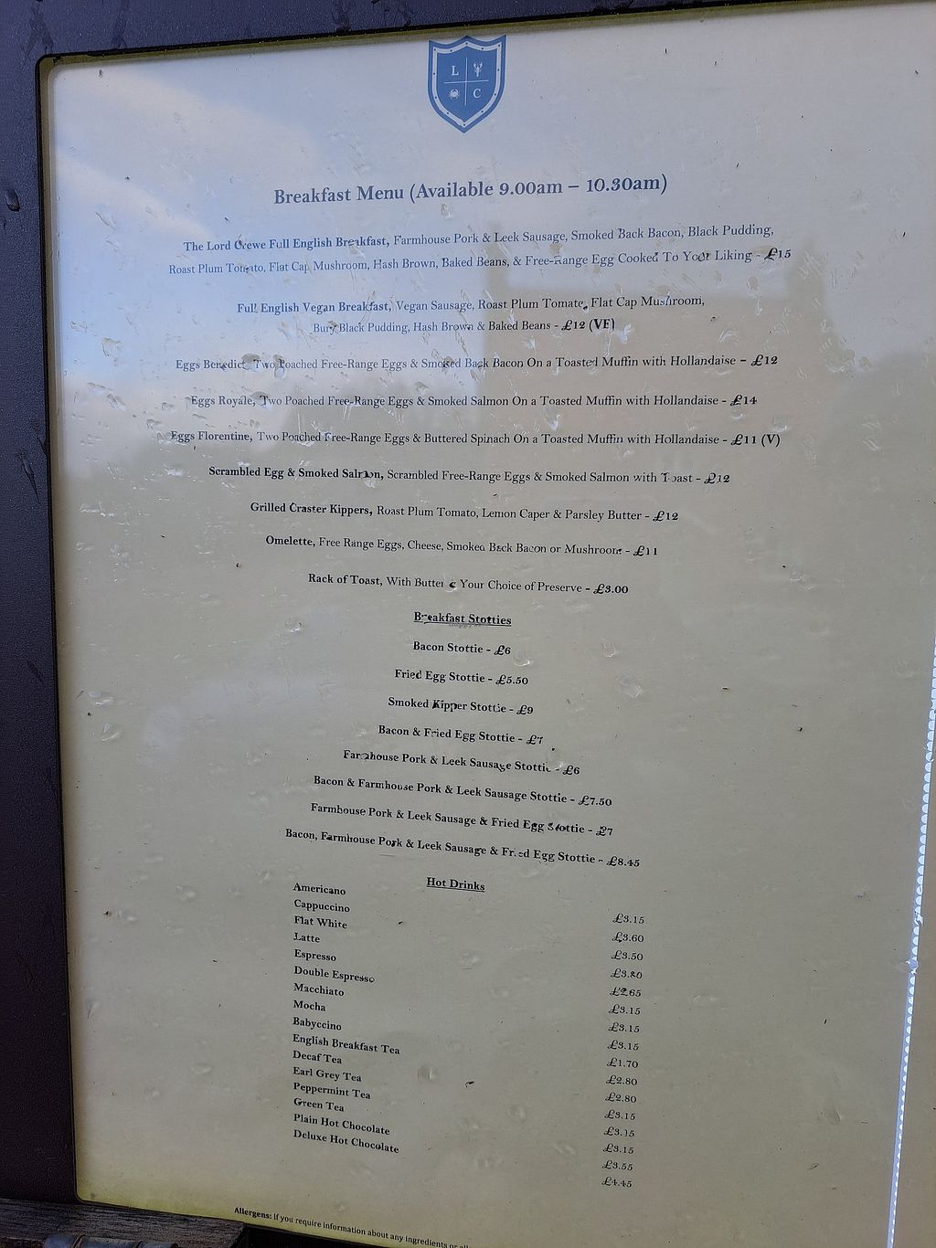 I was hiking and arrived at ‘The Lord Crewe’ around nine am, the cleaning crew was just finishing up and frankly, when I looked around, I wasn’t expecting a lot for a WFPB as it seemed extremely traditional.