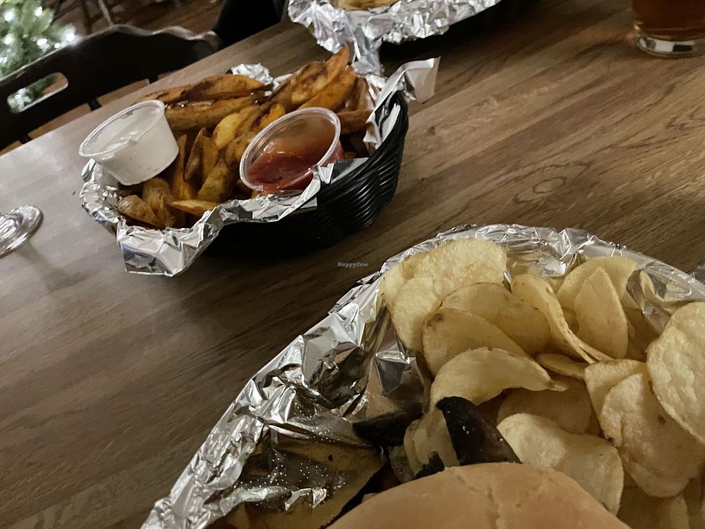 Serves meat, vegan options available. Restaurant and bar with a vegan menu section that includes vegan ranch, salad, the Beyond Burger, vegan "chicken" sandwich, and weekly vegan brunch options. Open Mon-Thu 4:00pm-11:00pm, Fri 12:00pm-11:30pm, Sat-Sun 12:00pm-11:00pm.
