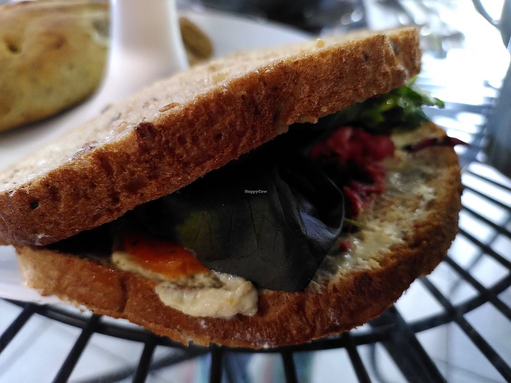 Wholesome food but not too filling, tasty. Nice big space and seating outside as well. The dog we had with us got excited every time a doorbell went off! (When an order was ready). One of us had vegan sausage sarnie, one had the flafel w chilli chutney, a nice touch