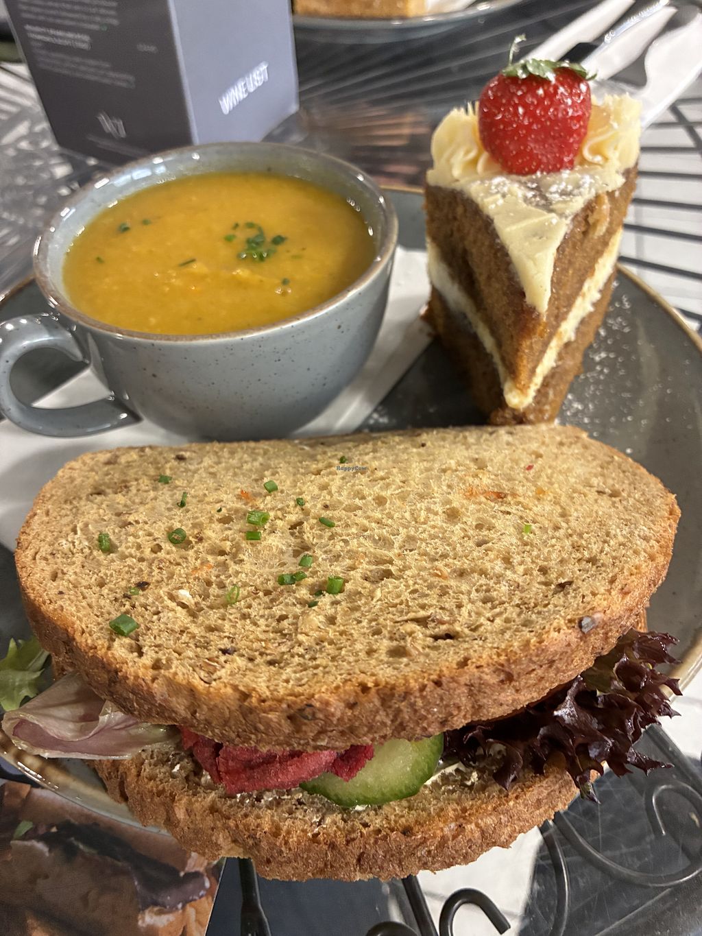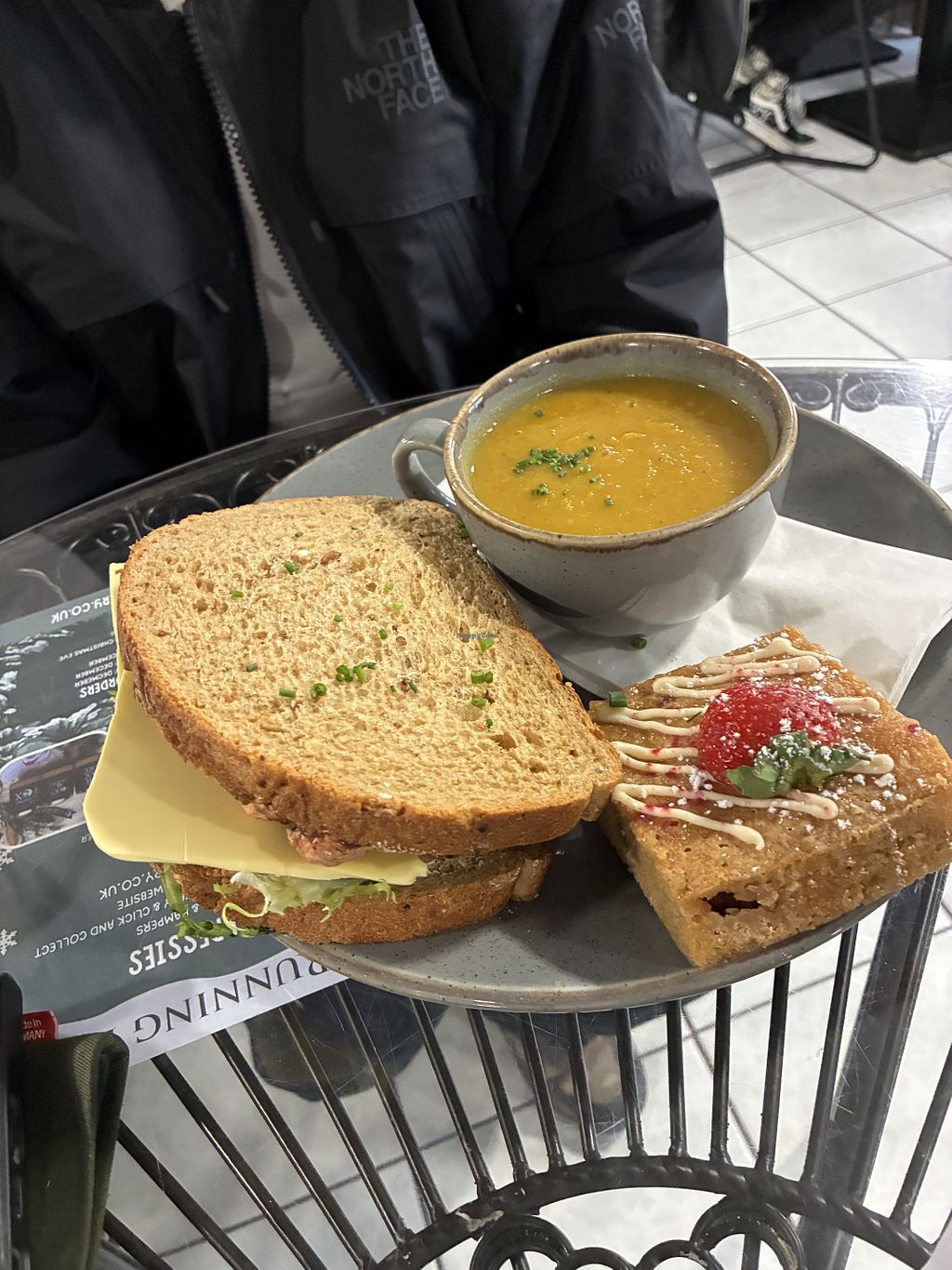 Delicious and warming soup, great choice of vegan cakes,