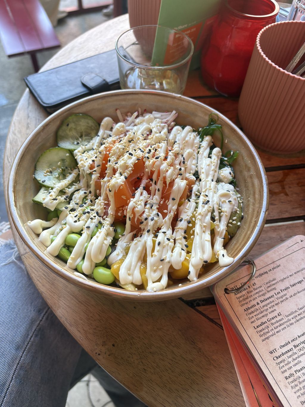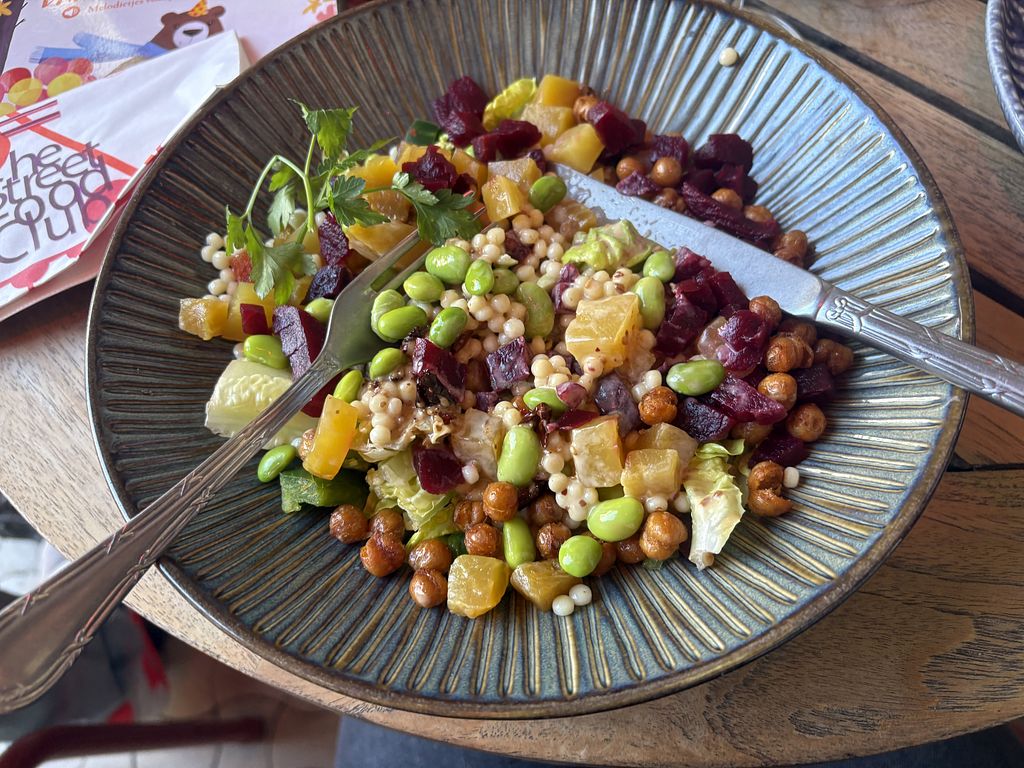 Read moreIk had een kleurrijke vegan bowl met onder andere geroosterde kikkererwten, edamame, couscous, rode biet, gegrilde groenten en een frisse dressing. De smaken waren perfect in balans: knapperig, fris, hartig en een tikje zoet. De presentatie was ook prachtig, zoals je ziet op de foto.