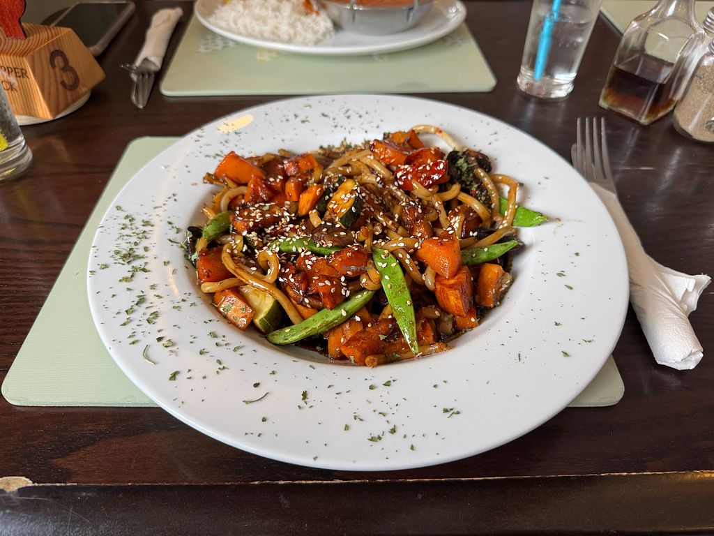 Came here with non-vegan friends and was pleasantly surprised. Their menu has clearly marked vegan and vegetarian options. I has the soba noodles (which unfortunately isn't on the updated summer menu, we just skirted in on the spring menu) It was a really nice generous portion. I then had the jaffa cake cake dessert with vegan icecream which was also lovely. Nice experience and friendly staff.