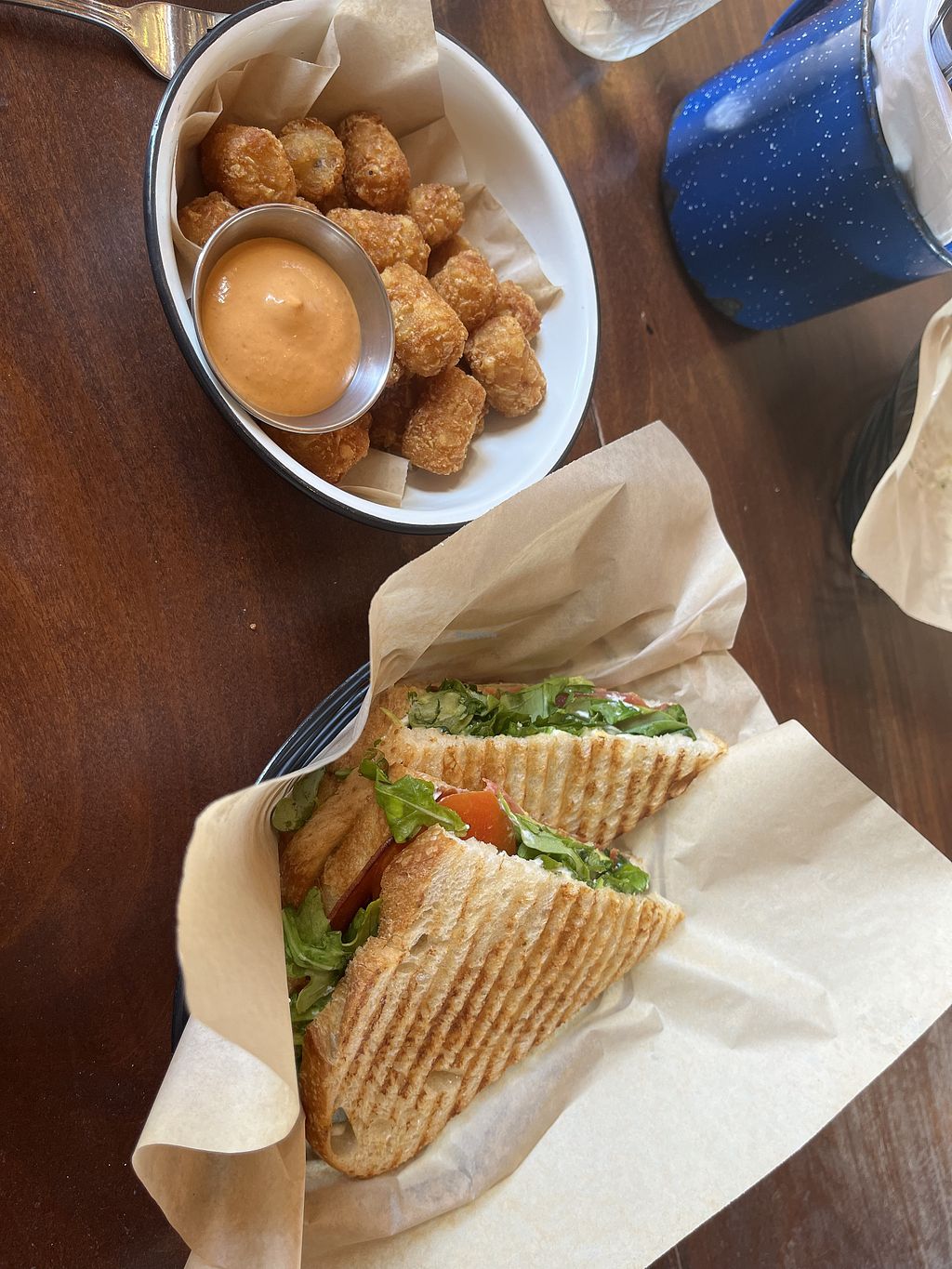 The southern fried chick'n sammie was cooked well and the tangy southwest ranch it came with was really tasty. The smokey chipotle aioli dipping sauce that came with my tater tots was also great.