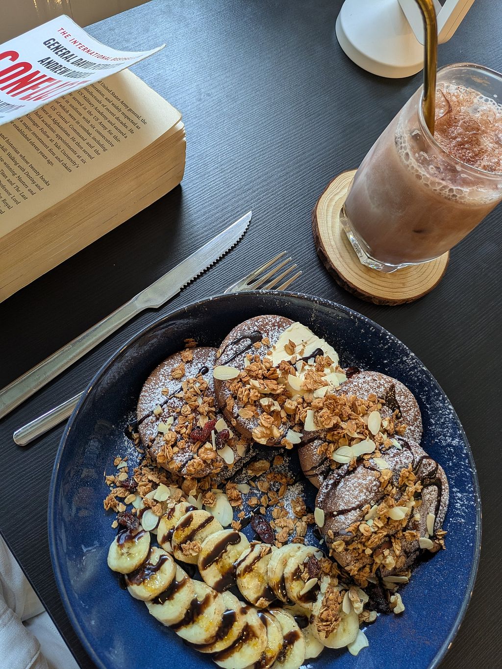 Huge variety of food. Had cocoa and a granola bowl, both were great. Super friendly staff and a very cute dog :)