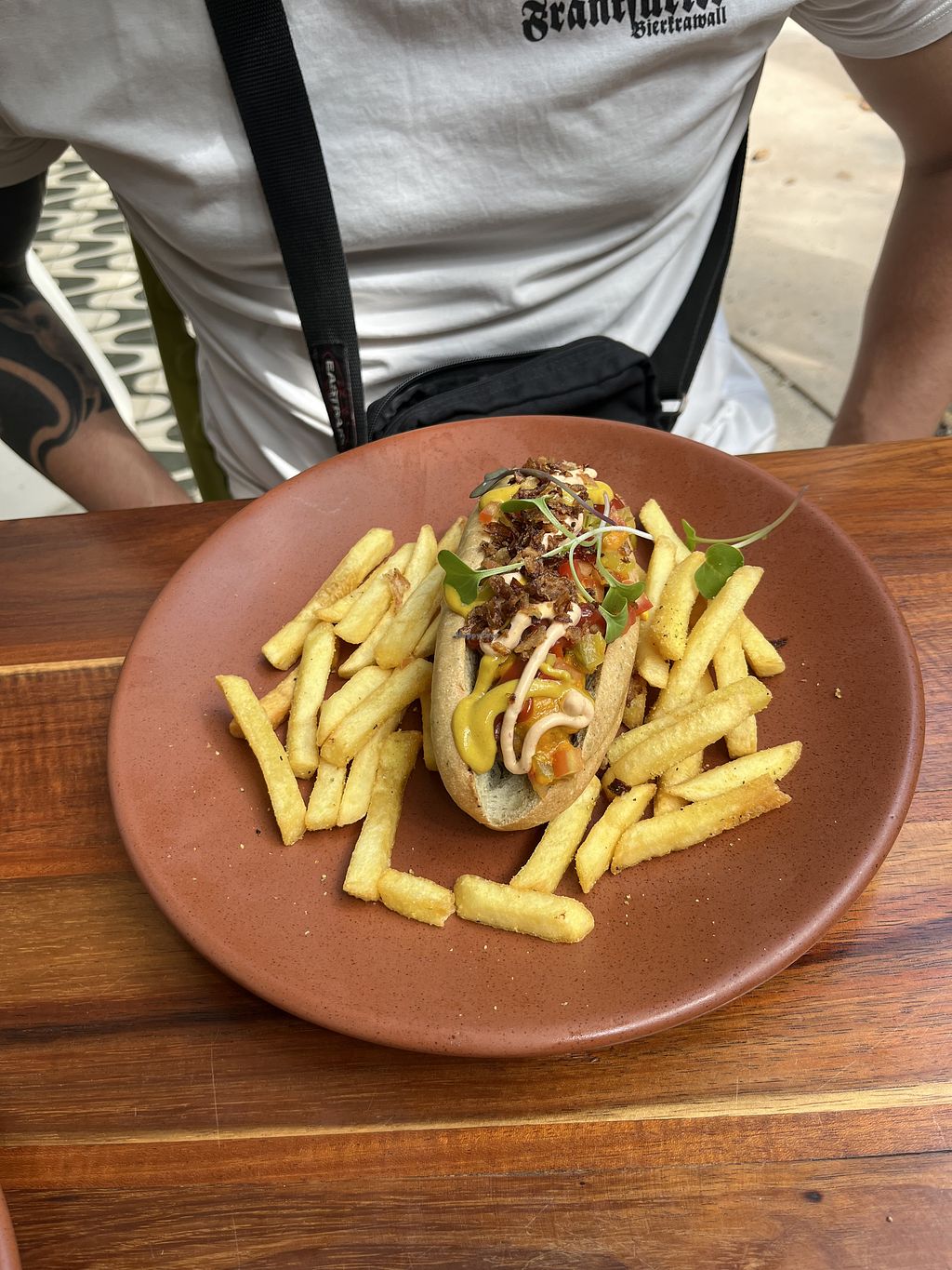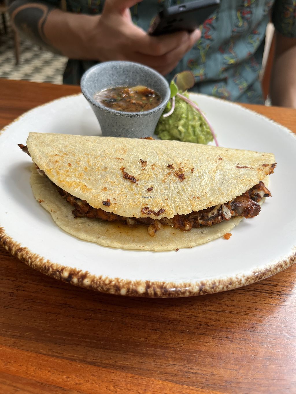 I had the Hummus with Mushroom confit and the Tacos. Everything was very delicious. And the outside tables are in a really beautiful spot.