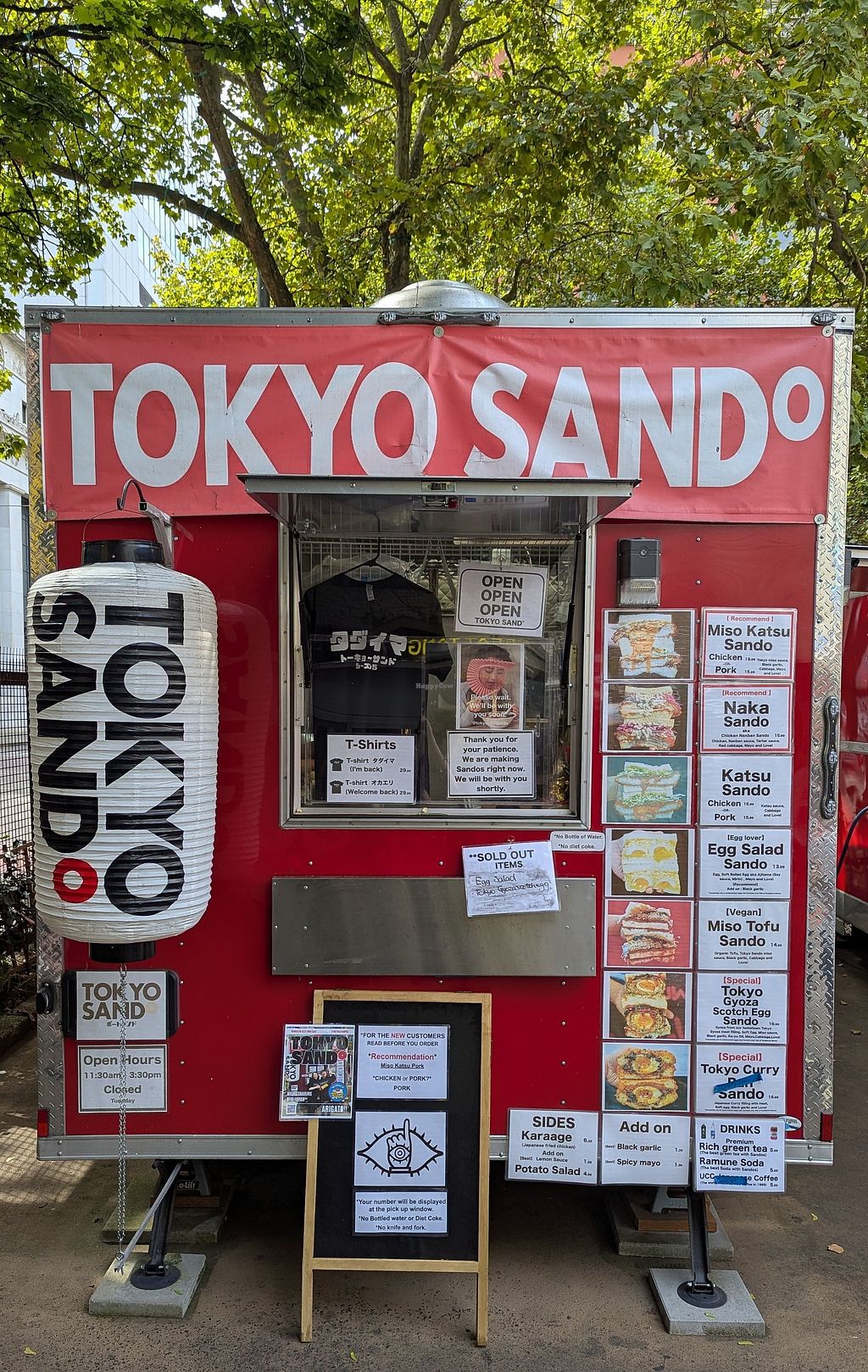 Serves meat, vegan options available. Food truck serving Japanese-style sandwiches. Offers clearly labeled vegan tofu miso katsu sandwich. Open Mon 11:30am-3:30pm, Wed-Sun 11:30am-3:30pm. Closed Tue.